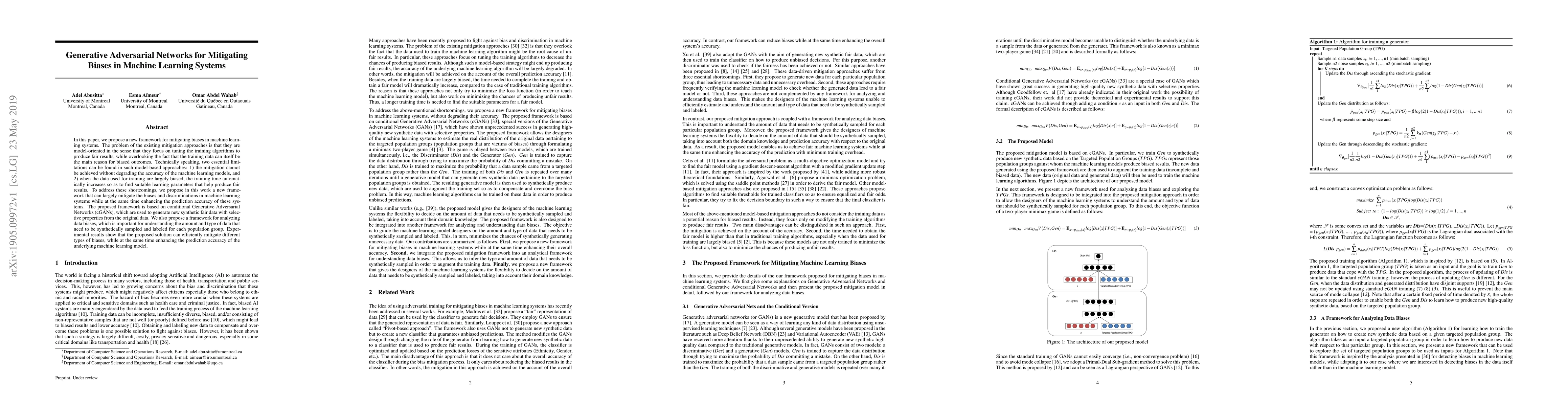 In this paper, we propose a new framework for mitigating biases in machine learning systems. The problem of the existing mitigation approaches is that they are model-oriented in the sense that they focus on tuning the training algorithms to produce fair results, while overlooking the fact that the training data can itself be the main reason for biased outcomes. Technically speaking, two essential limitations can be found in such model-based approaches: 1) the mitigation cannot be achieved without degrading the accuracy of the machine learning models, and 2) when the data used for training are largely biased, the training time automatically increases so as to find suitable learning parameters that help produce fair results. To address these shortcomings, we propose in this work a new framework that can largely mitigate the biases and discriminations in machine learning systems while at the same time enhancing the prediction accuracy of these systems. The proposed framework is based on conditional Generative Adversarial Networks (cGANs), which are used to generate new synthetic fair data with selective properties from the original data. We also propose a framework for analyzing data biases, which is important for understanding the amount and type of data that need to be synthetically sampled and labeled for each population group. Experimental results show that the proposed solution can efficiently mitigate different types of biases, while at the same time enhancing the prediction accuracy of the underlying machine learning model.