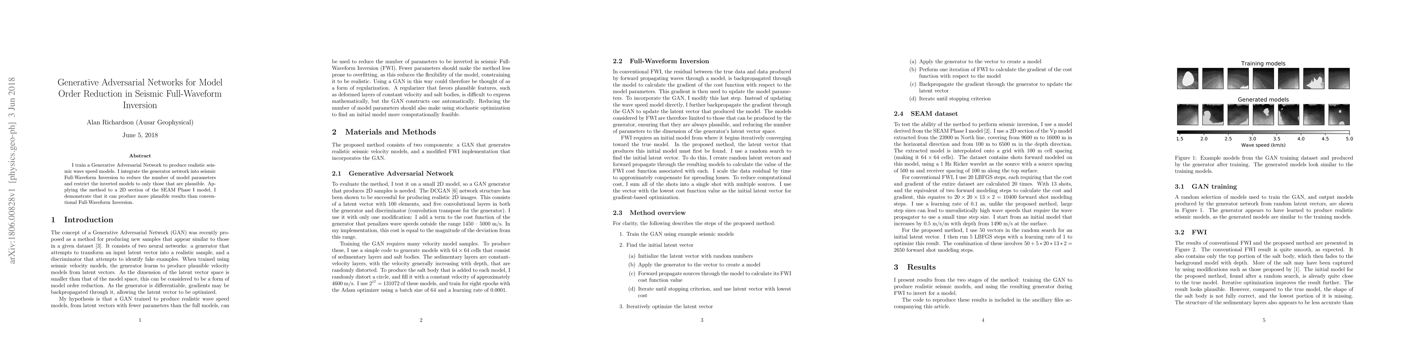 This paper trains a Generative Adversarial Network to generate realistic seismic wave speed models, integrating it into seismic Full-Waveform Inversion to reduce model parameters and improve plausibility. The method is shown to yield more plausible results than conventional inversion on a 2D section of the SEAM model.