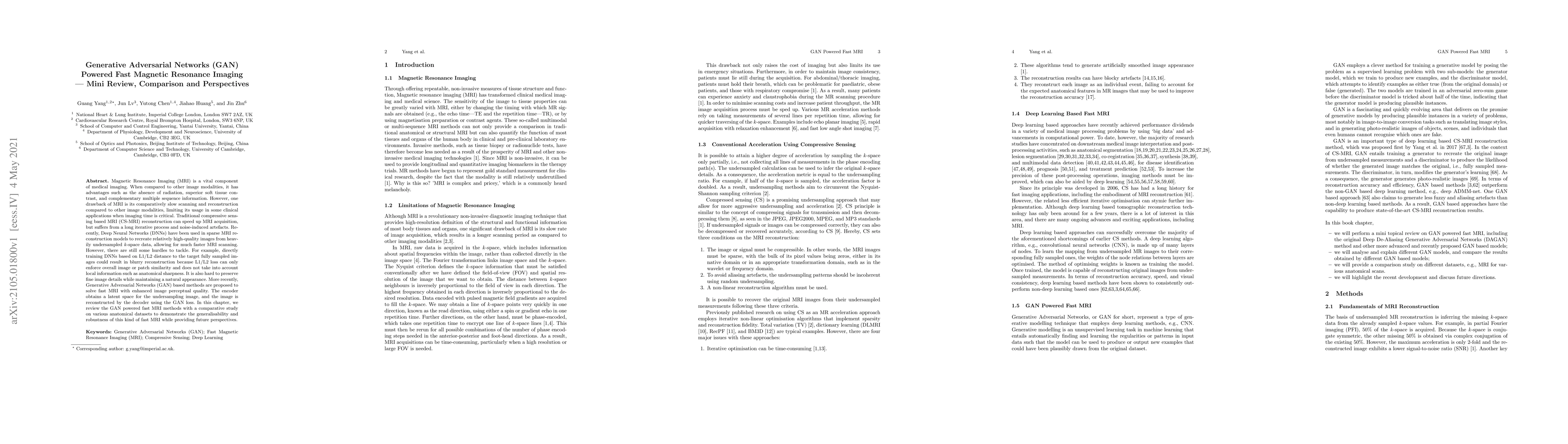 Magnetic Resonance Imaging (MRI) is a vital component of medical imaging. When compared to other image modalities, it has advantages such as the absence of radiation, superior soft tissue contrast, and complementary multiple sequence information. However, one drawback of MRI is its comparatively slow scanning and reconstruction compared to other image modalities, limiting its usage in some clinical applications when imaging time is critical. Traditional compressive sensing based MRI (CS-MRI) reconstruction can speed up MRI acquisition, but suffers from a long iterative process and noise-induced artefacts. Recently, Deep Neural Networks (DNNs) have been used in sparse MRI reconstruction models to recreate relatively high-quality images from heavily undersampled k-space data, allowing for much faster MRI scanning. However, there are still some hurdles to tackle. For example, directly training DNNs based on L1/L2 distance to the target fully sampled images could result in blurry reconstruction because L1/L2 loss can only enforce overall image or patch similarity and does not take into account local information such as anatomical sharpness. It is also hard to preserve fine image details while maintaining a natural appearance. More recently, Generative Adversarial Networks (GAN) based methods are proposed to solve fast MRI with enhanced image perceptual quality. The encoder obtains a latent space for the undersampling image, and the image is reconstructed by the decoder using the GAN loss. In this chapter, we review the GAN powered fast MRI methods with a comparative study on various anatomical datasets to demonstrate the generalisability and robustness of this kind of fast MRI while providing future perspectives.