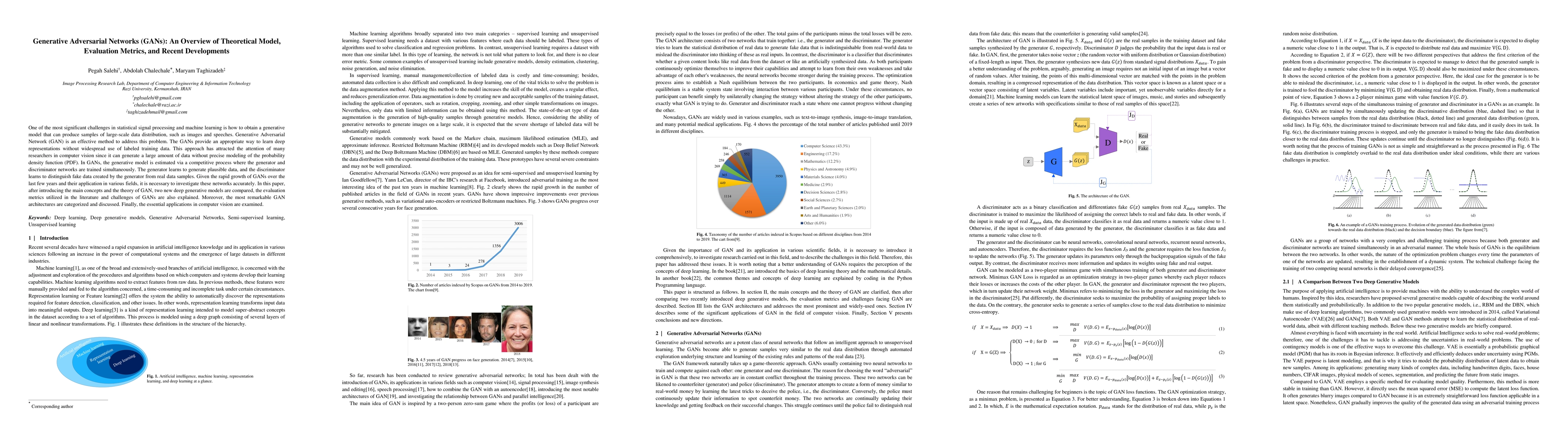 This paper provides an overview of Generative Adversarial Networks (GANs), detailing their theoretical model, evaluation metrics, and recent developments. It compares new deep generative models, discusses challenges, and categorizes notable GAN architectures, while also examining their applications in computer vision.