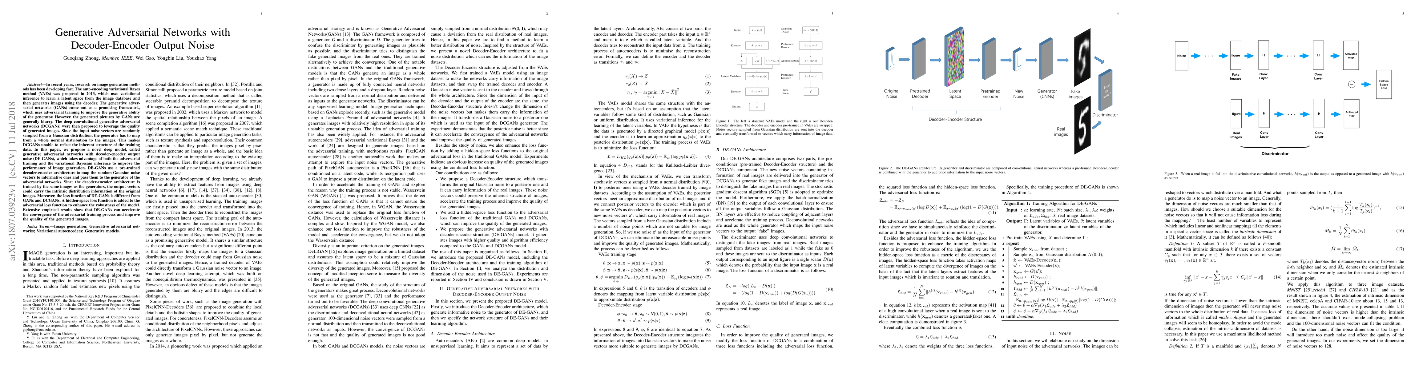 This paper proposes DE-GANs, a novel deep model that combines adversarial training with variational Bayesian inference to enhance image generation. By using a pre-trained decoder-encoder to transform random noise into informative vectors, DE-GANs leverage the intrinsic structure of training data, leading to improved image quality and faster convergence compared to traditional GANs and DCGANs.