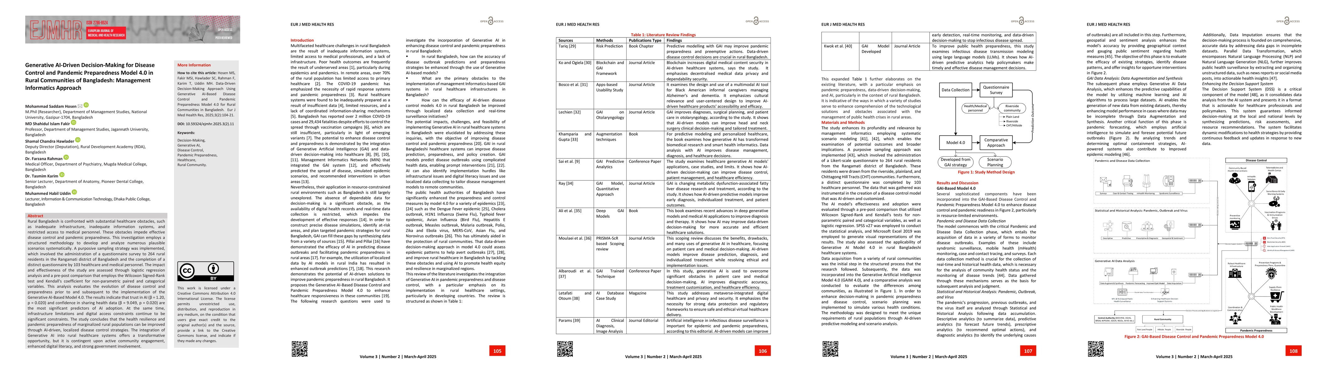 Rural Bangladesh is confronted with substantial healthcare obstacles, such as inadequate infrastructure, inadequate information systems, and restricted access to medical personnel. These obstacles impede effective disease control and pandemic preparedness. This investigation employs a structured methodology to develop and analyze numerous plausible scenarios systematically. A purposive sampling strategy was implemented, which involved the administration of a questionnaire survey to 264 rural residents in the Rangamati district of Bangladesh and the completion of a distinct questionnaire by 103 healthcare and medical personnel. The impact and effectiveness of the study are assessed through logistic regression analysis and a pre-post comparison that employs the Wilcoxon Signed-Rank test and Kendall's coefficient for non-parametric paired and categorical variables. This analysis evaluates the evolution of disease control and preparedness prior to and subsequent to the implementation of the Generative AI-Based Model 4.0. The results indicate that trust in AI (\b{eta} = 1.20, p = 0.020) and confidence in sharing health data (\b{eta} = 9.049, p = 0.020) are the most significant predictors of AI adoption. At the same time, infrastructure limitations and digital access constraints continue to be significant constraints. The study concludes that the health resilience and pandemic preparedness of marginalized rural populations can be improved through AI-driven, localized disease control strategies. The integration of Generative AI into rural healthcare systems offers a transformative opportunity, but it is contingent upon active community engagement, enhanced digital literacy, and strong government involvement.