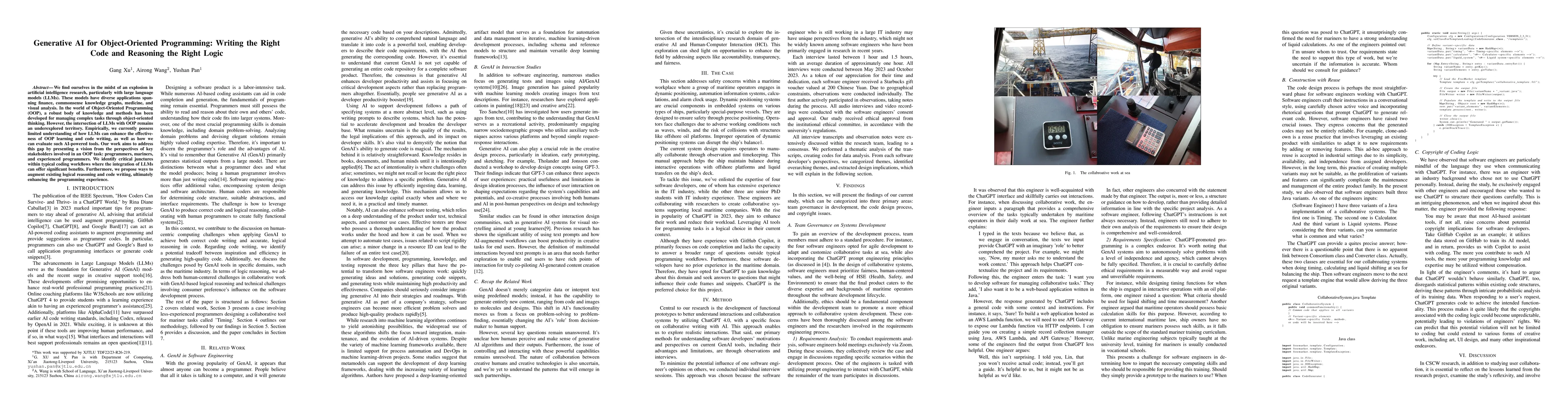 We find ourselves in the midst of an explosion in artificial intelligence research, particularly with large language models (LLMs). These models have diverse applications spanning finance, commonsense knowledge graphs, medicine, and visual analysis. In the world of Object-Oriented Programming(OOP), a robust body of knowledge and methods has been developed for managing complex tasks through object-oriented thinking. However, the intersection of LLMs with OOP remains an underexplored territory. Empirically, we currently possess limited understanding of how LLMs can enhance the effectiveness of OOP learning and code writing, as well as how we can evaluate such AI-powered tools. Our work aims to address this gap by presenting a vision from the perspectives of key stakeholders involved in an OOP task: programmers, mariners, and experienced programmers. We identify critical junctures within typical coding workflows where the integration of LLMs can offer significant benefits. Furthermore, we propose ways to augment existing logical reasoning and code writing, ultimately enhancing the programming experience.