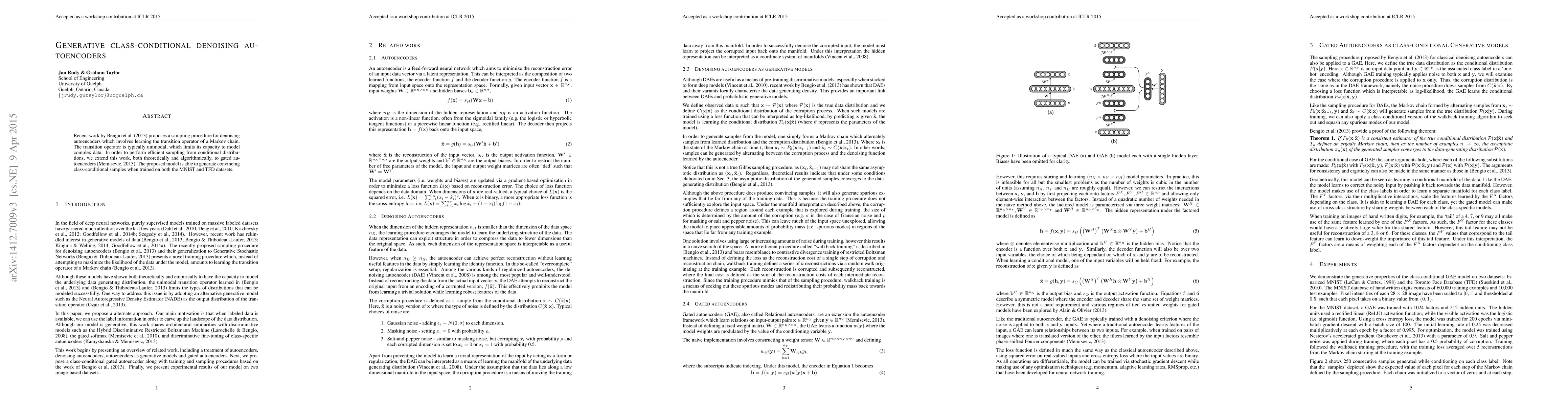 This paper extends the generative class-conditional autoencoder framework by incorporating gated autoencoders to improve sampling from conditional distributions. The proposed model effectively generates realistic class-conditional samples on both MNIST and TFD datasets.