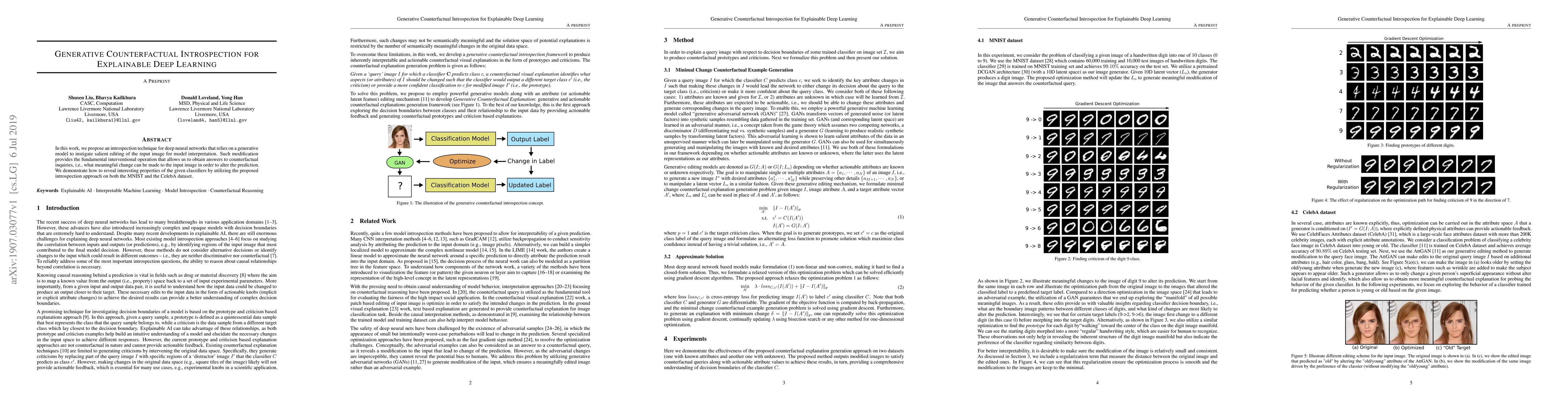 This paper introduces a generative counterfactual introspection technique for deep neural networks, enabling interpretable input image modifications to understand model predictions. The method is demonstrated on MNIST and CelebA datasets to reveal classifier properties.