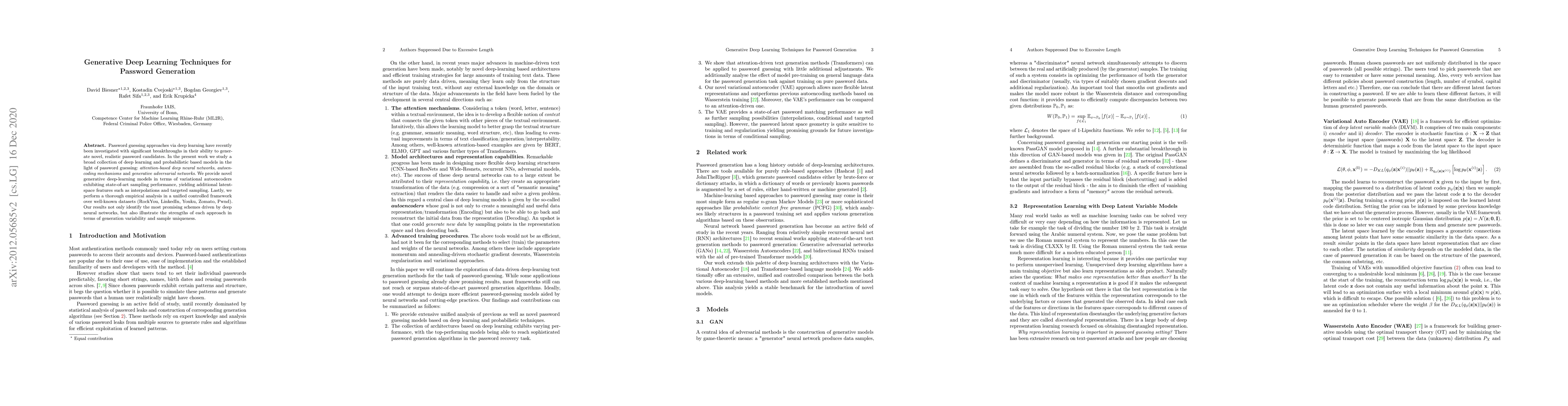 This paper explores various deep learning techniques, including attention-based networks, autoencoders, and GANs, for generating realistic passwords. The study introduces state-of-the-art variational autoencoders and conducts a comprehensive empirical analysis across multiple datasets, highlighting the strengths of each method in terms of password generation variability and uniqueness.