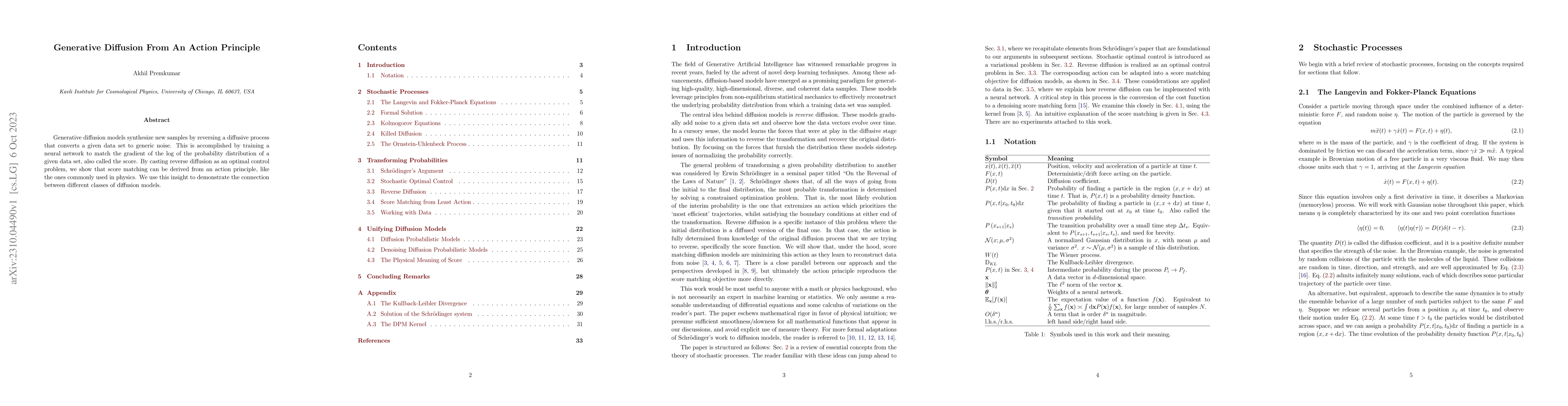 This paper proposes a generative diffusion model that reverses a diffusive process to synthesize new samples by training a neural network to match the gradient of the log probability distribution. The authors derive score matching from an action principle, revealing connections between different diffusion models.