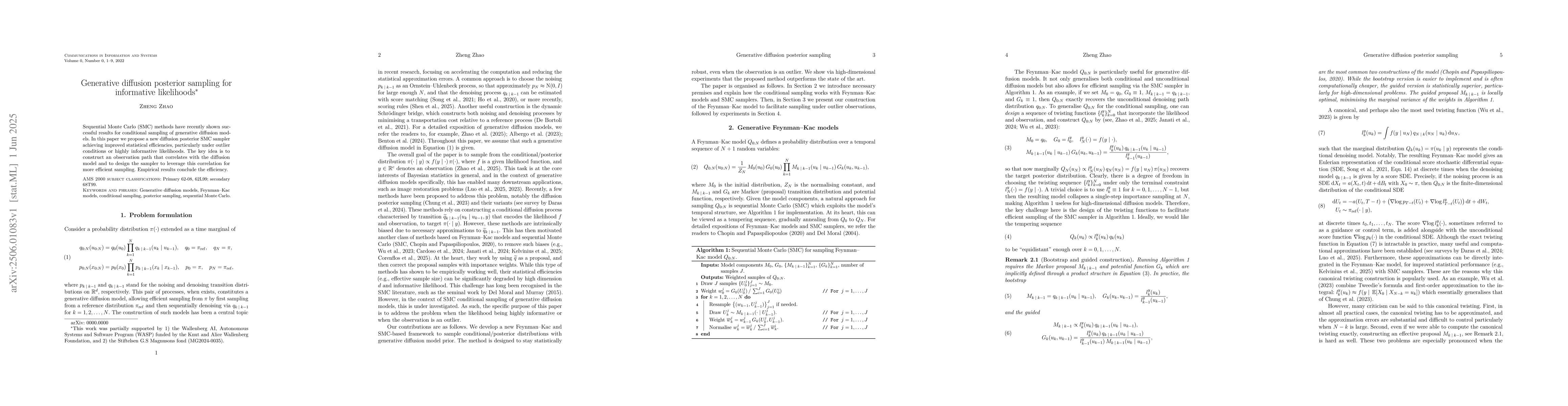 Researchers developed a new method for efficient sampling in generative diffusion models, achieving improved performance under outlier conditions and highly informative likelihoods. The approach leverages correlation between the model's observation path and the data to enhance statistical efficiency.