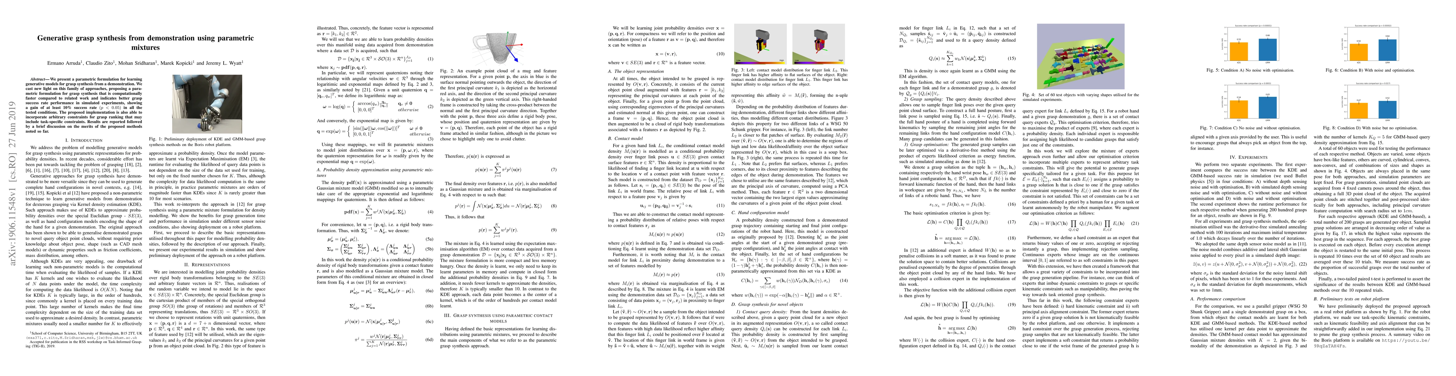 We present a parametric formulation for learning generative models for grasp synthesis from a demonstration. We cast new light on this family of approaches, proposing a parametric formulation for grasp synthesis that is computationally faster compared to related work and indicates better grasp success rate performance in simulated experiments, showing a gain of at least 10% success rate (p < 0.05) in all the tested conditions. The proposed implementation is also able to incorporate arbitrary constraints for grasp ranking that may include task-specific constraints. Results are reported followed by a brief discussion on the merits of the proposed methods noted so far.