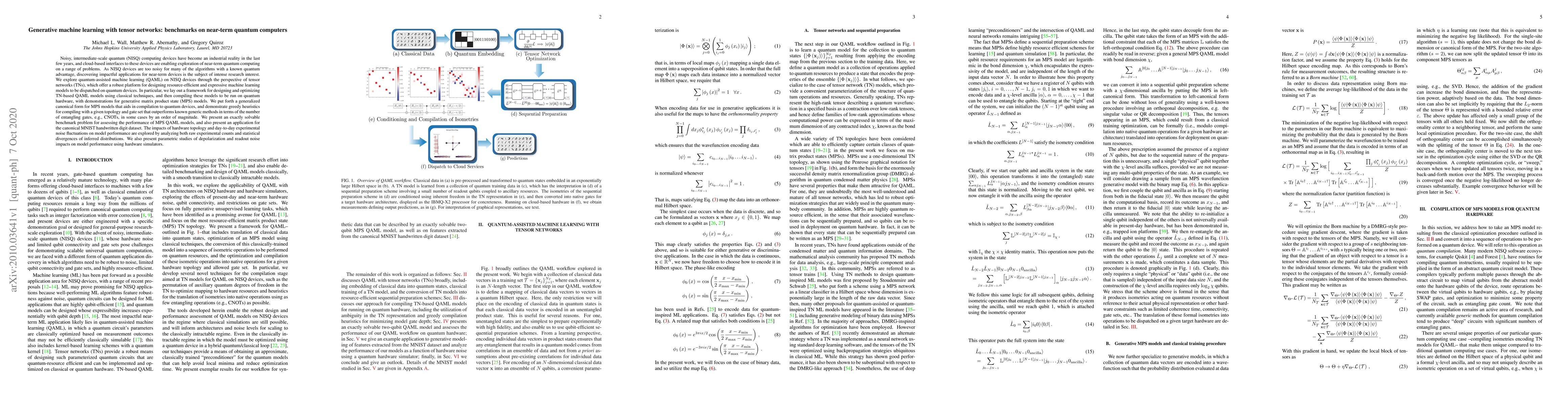 This paper explores the use of tensor networks for quantum-assisted machine learning on noisy, intermediate-scale quantum (NISQ) computers, presenting a framework for optimizing tensor network-based models for quantum hardware. It demonstrates the effectiveness of tensor network-based generative models on quantum devices and discusses the impact of hardware noise and topology on model performance.