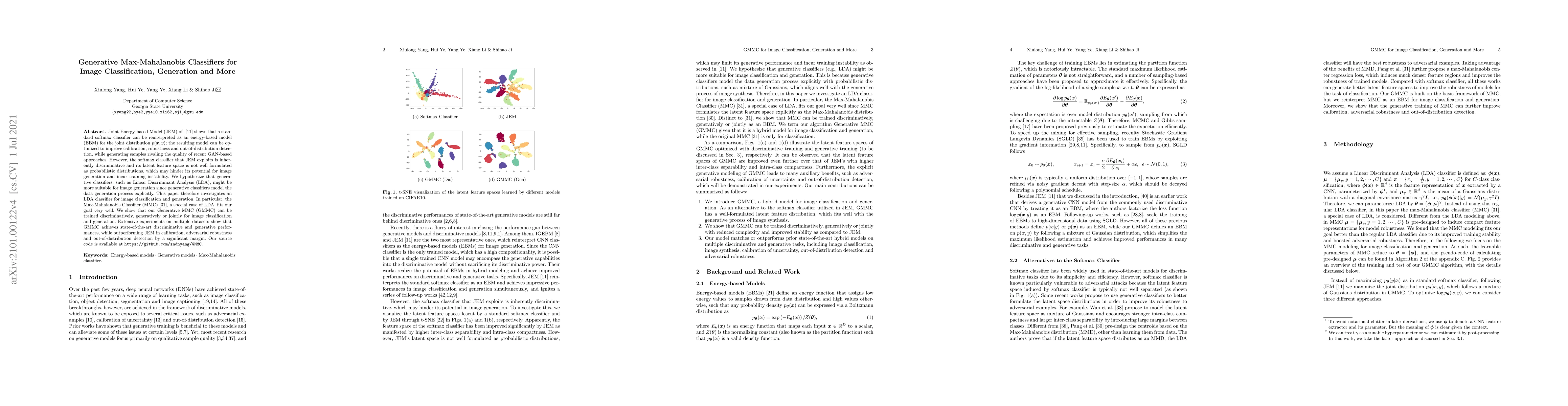 Joint Energy-based Model (JEM) of Grathwohl et al. shows that a standard softmax classifier can be reinterpreted as an energy-based model (EBM) for the joint distribution p(x,y); the resulting model can be optimized to improve calibration, robustness, and out-of-distribution detection, while generating samples rivaling the quality of recent GAN-based approaches. However, the softmax classifier that JEM exploits is inherently discriminative and its latent feature space is not well formulated as probabilistic distributions, which may hinder its potential for image generation and incur training instability. We hypothesize that generative classifiers, such as Linear Discriminant Analysis (LDA), might be more suitable for image generation since generative classifiers model the data generation process explicitly. This paper therefore investigates an LDA classifier for image classification and generation. In particular, the Max-Mahalanobis Classifier (MMC), a special case of LDA, fits our goal very well. We show that our Generative MMC (GMMC) can be trained discriminatively, generatively, or jointly for image classification and generation. Extensive experiments on multiple datasets show that GMMC achieves state-of-the-art discriminative and generative performances, while outperforming JEM in calibration, adversarial robustness, and out-of-distribution detection by a significant margin. Our source code is available at https://github.com/sndnyang/GMMC.