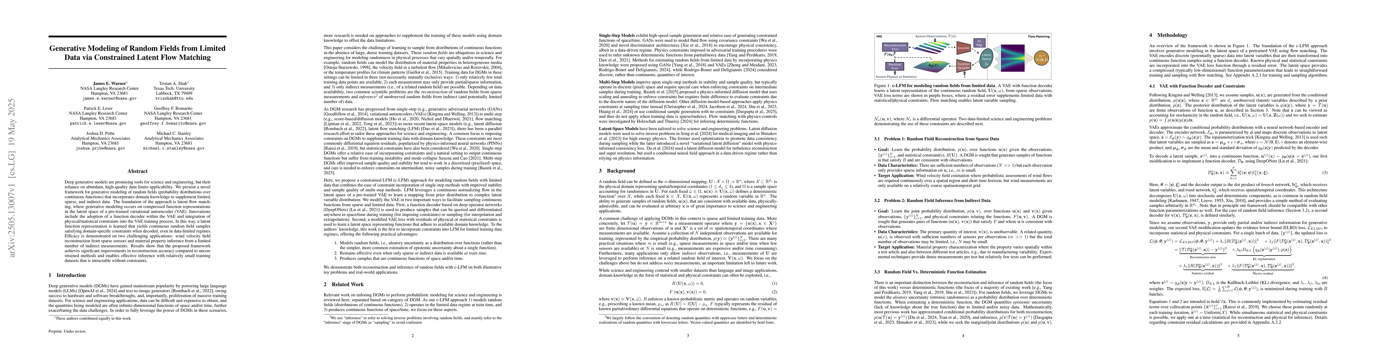 The research introduces a novel framework for generative modeling of random fields using a pre-trained variational autoencoder (VAE) with a function decoder. It incorporates domain knowledge and constraints into the VAE training process via latent flow matching, enabling the generation of continuous random field samples satisfying specific constraints even with limited data.