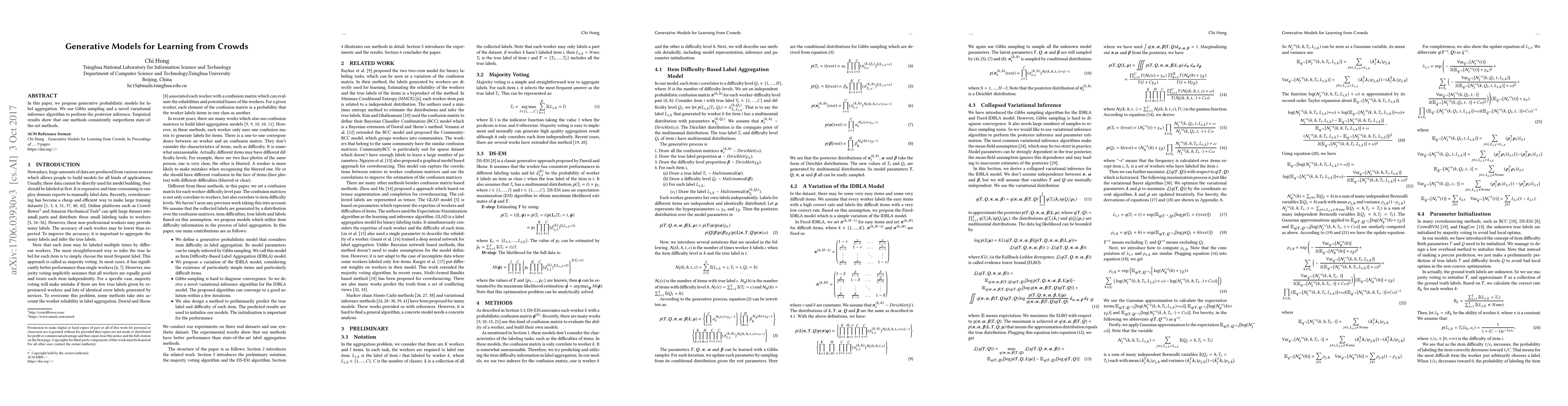 In this paper, we propose generative probabilistic models for label aggregation. We use Gibbs sampling and a novel variational inference algorithm to perform the posterior inference. Empirical results show that our methods consistently outperform state-of-the-art methods.