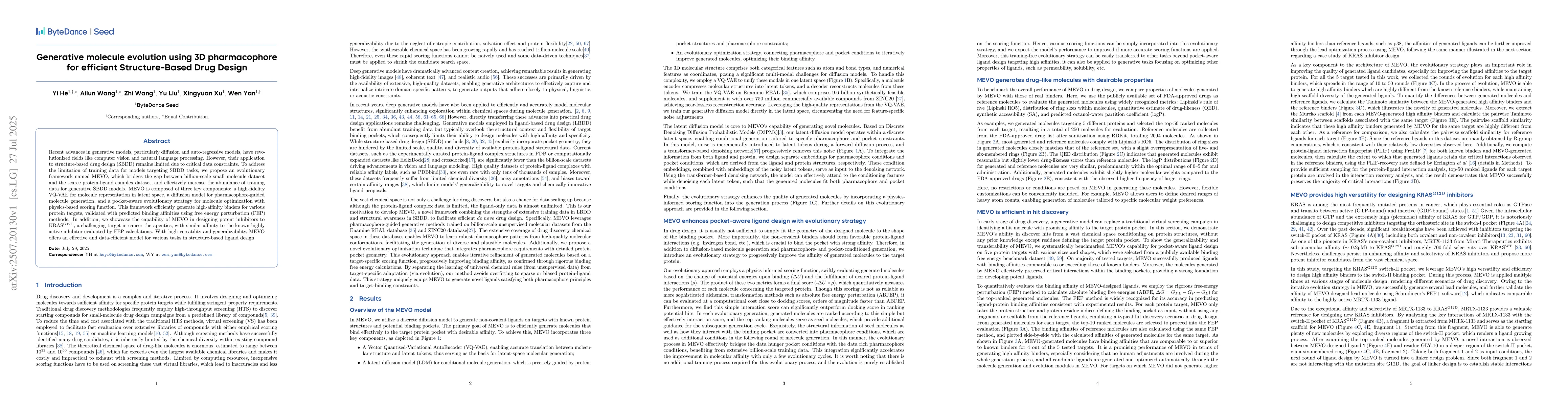 The research introduces MEVO, an evolutionary framework for structure-based drug design using generative models. MEVO, combining VQ-VAE, diffusion models, and an evolutionary strategy, efficiently generates high-affinity binders for various proteins, including potent inhibitors for the challenging KRAS^G12D target, demonstrating data-efficiency and versatility in ligand design.