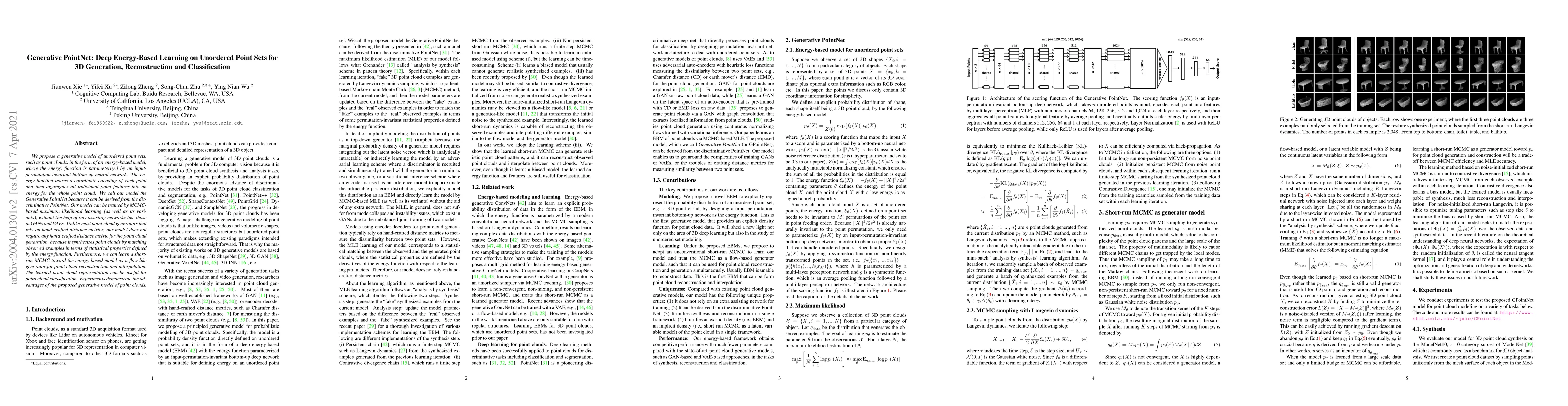 The paper introduces Generative PointNet, an energy-based model for generating, reconstructing, and classifying unordered point sets like point clouds. Unlike traditional methods, it uses a permutation-invariant neural network to learn point cloud representations without hand-crafted distance metrics, enabling efficient training and application in classification tasks.
