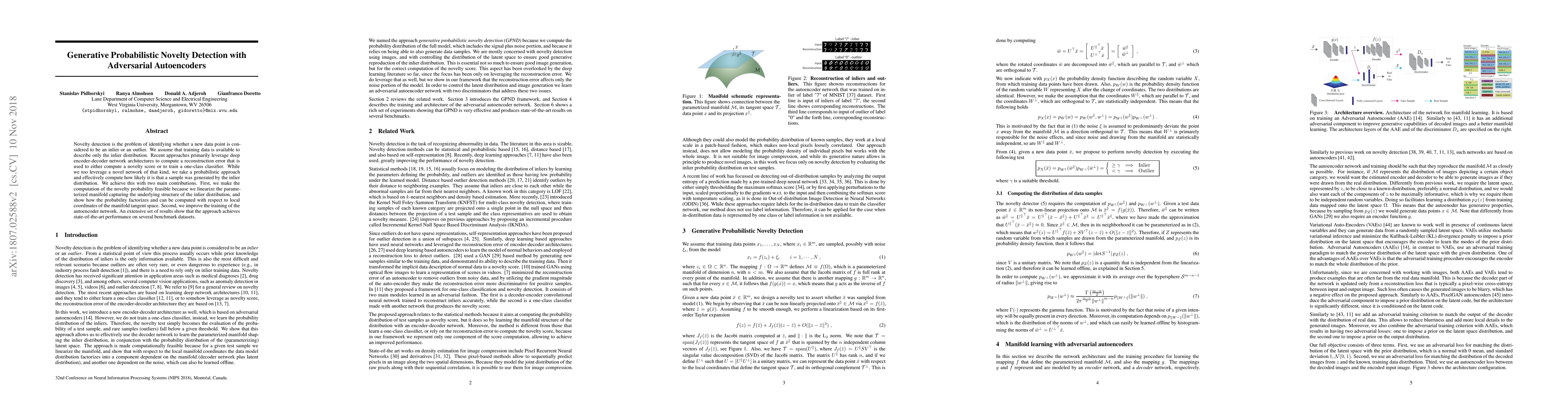 This research paper introduces a novel approach to novelty detection using generative probabilistic methods with adversarial autoencoders, achieving state-of-the-art results on several benchmark datasets.
