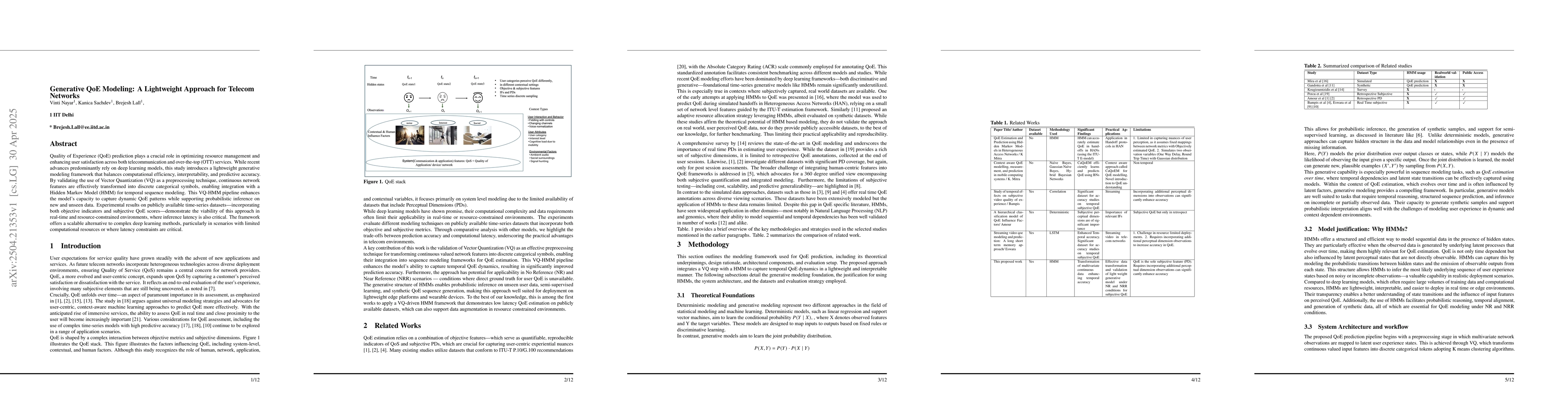 A lightweight generative modeling framework using Vector Quantization and Hidden Markov Models improves QoE prediction in telecom networks with high accuracy and low latency.