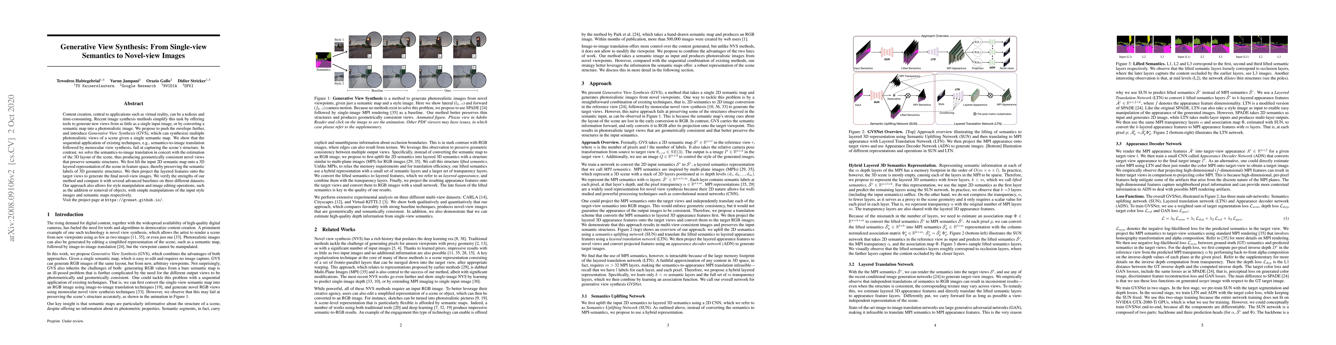 This paper introduces Generative View Synthesis (GVS), a method to create multiple photorealistic views from a single semantic map, addressing the limitations of sequential techniques by jointly estimating 3D scene layout and translating semantics to images for geometrically consistent results. The method also supports style manipulation and image editing.