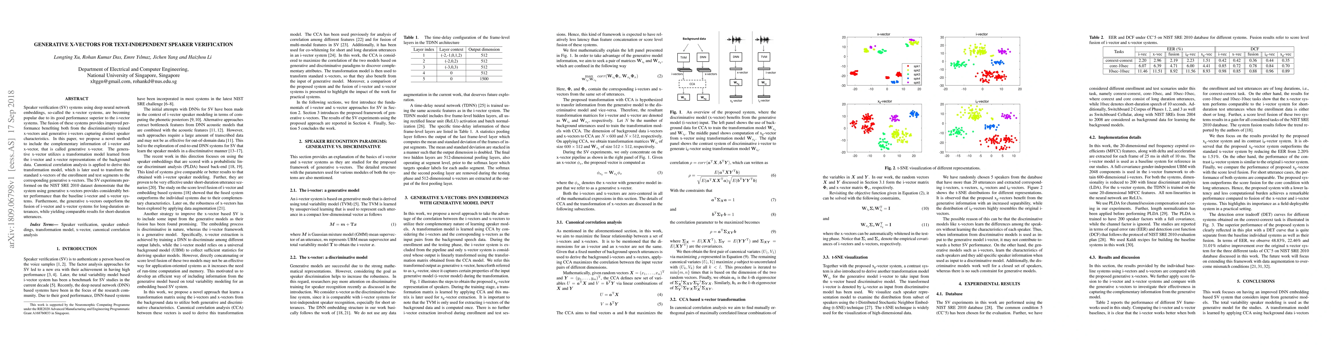 This paper proposes generative x-vectors, which combine discriminative x-vectors and generative i-vectors, to improve text-independent speaker verification. Experiments show that the generative x-vectors outperform both baseline systems and their fusion, especially for long-duration utterances.