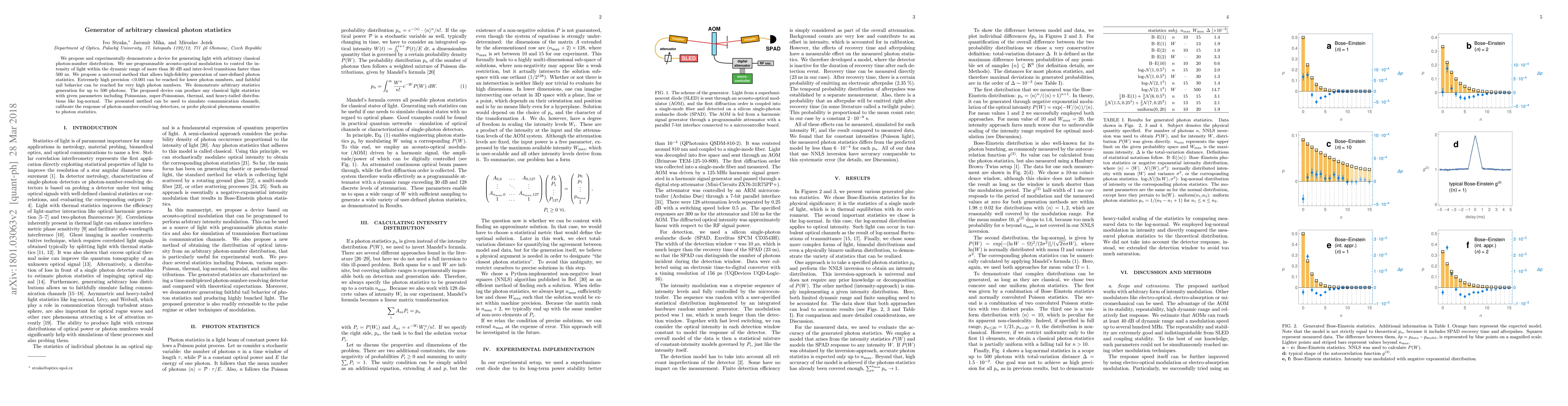We propose and experimentally demonstrate a device for generating light with arbitrary classical photon-number distribution. We use programmable acousto-optical modulation to control the intensity of light within the dynamic range of more than 30 dB and inter-level transitions faster than 500 ns. We propose a universal method that allows high-fidelity generation of user-defined photon statistics. Extremely high precision <0.001 can be reached for lower photon numbers, and faithful tail behavior can be reached for very high photon numbers. We demonstrate arbitrary statistics generation for up to 500 photons. The proposed device can produce any classical light statistics with given parameters including Poissonian, super-Poissonian, thermal, and heavy-tailed distributions like log-normal. The presented method can be used to simulate communication channels, calibrate the response of photon-number-resolving detectors, or probe physical phenomena sensitive to photon statistics.
