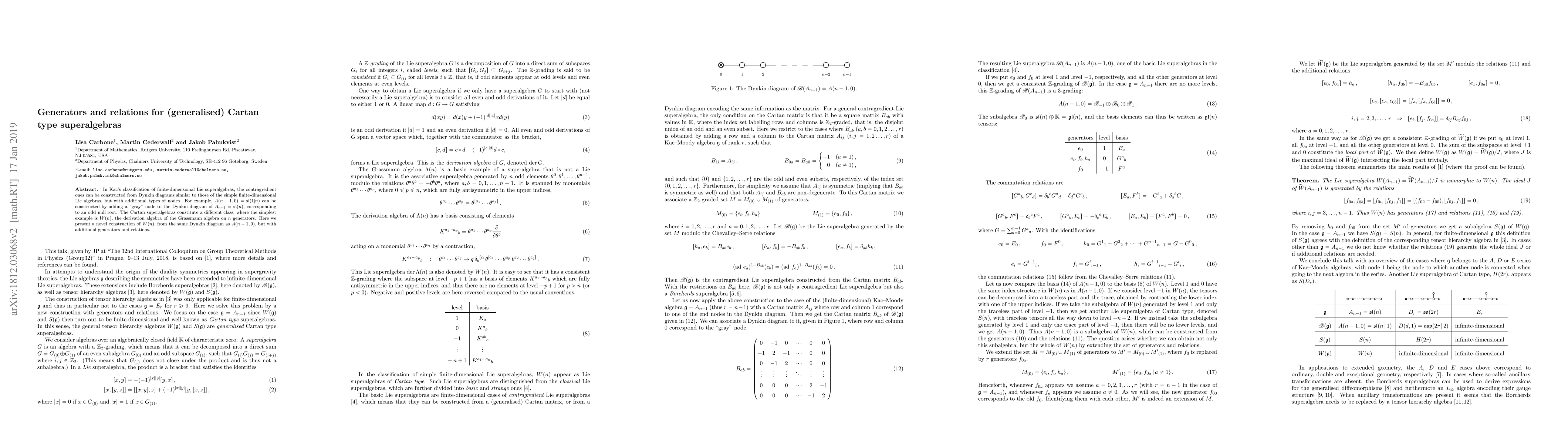 This paper explores the construction of generalised Cartan type superalgebras using Dynkin diagrams. It introduces a novel method to construct $W(n)$ superalgebras by extending the diagram of $A(n-1,0)$ with additional generators and relations.