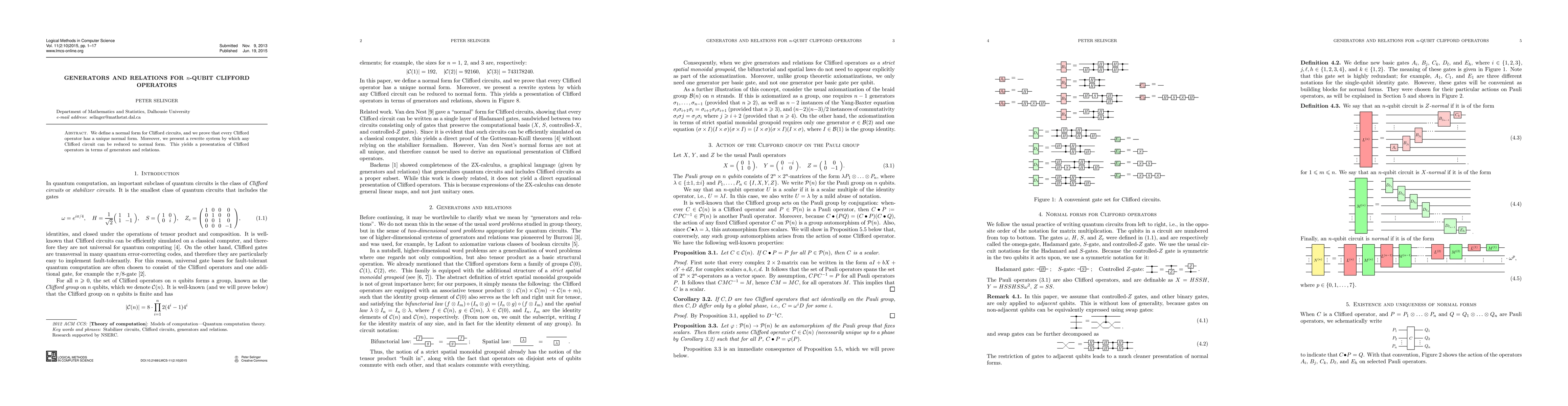 Researchers developed a method to express n-qubit Clifford operators in terms of generators and relations, providing a unique normal form for these operators.