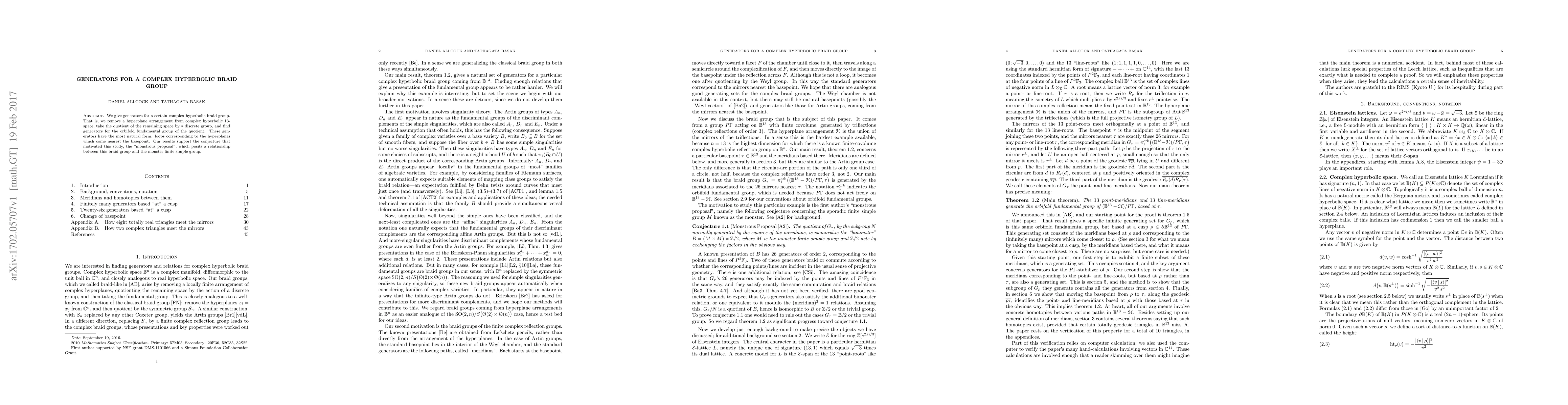 Researchers discovered generators for a complex hyperbolic braid group, which supports the relationship between this group and the monster finite simple group, and provides insights into the structure of these geometric spaces.