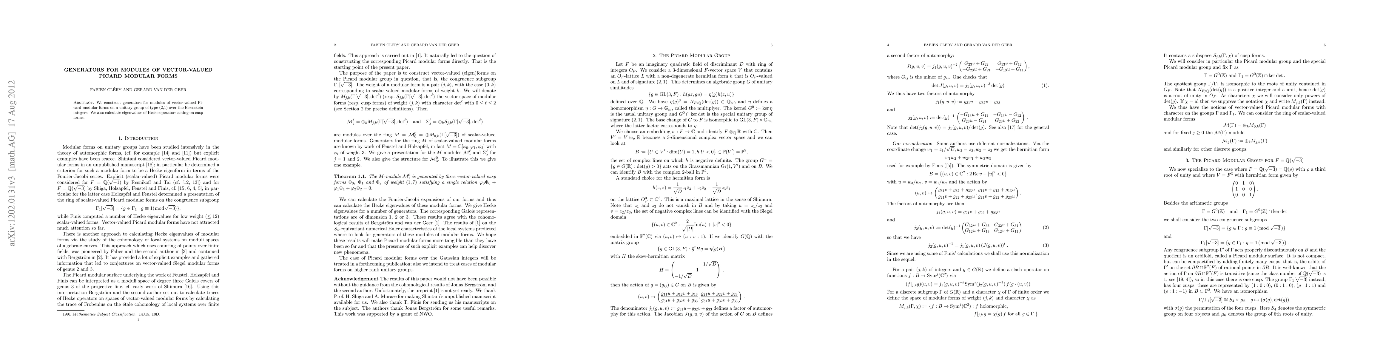 Summary: This paper constructs generators for modules of vector-valued Picard modular forms for a unitary group of type (2,1) over Eisenstein integers and computes the eigenvalues of Hecke operators on cusp forms.