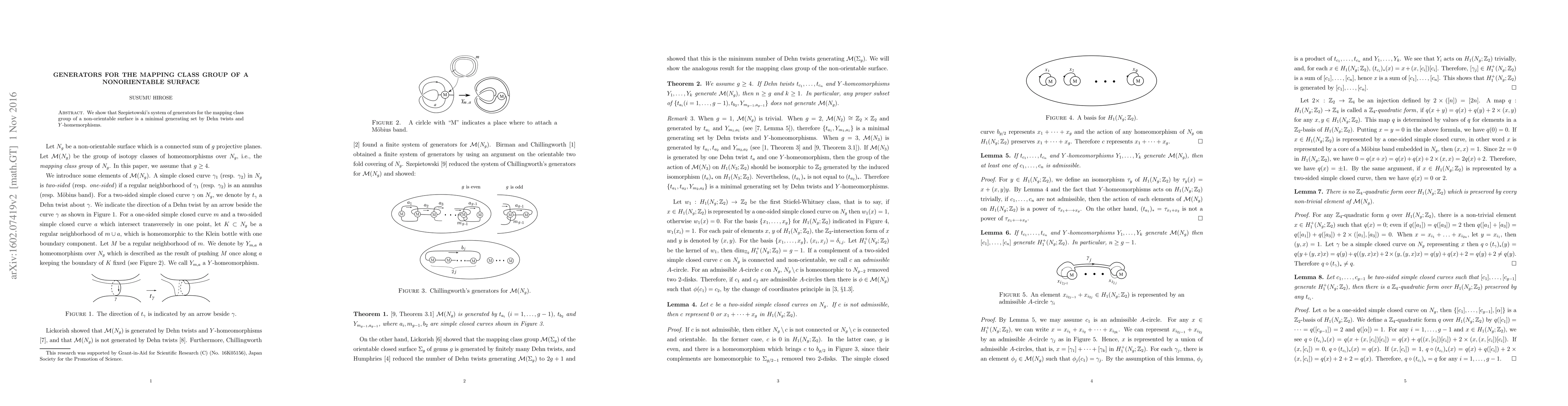 The paper introduces and utilizes the concept of admissible A-circles and Z4-quadratic forms to prove minimality of generator sets for mapping class groups of non-orientable surfaces.