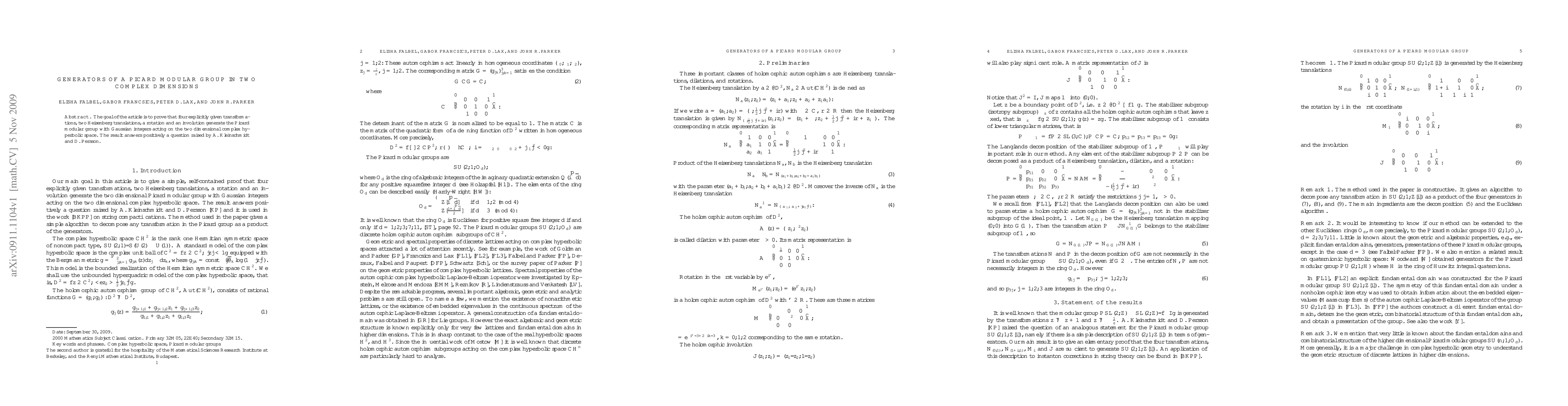 Researchers prove four specific transformations generate the Picard modular group in a two-dimensional complex space, answering a question by Kleinschmidt and Persson.