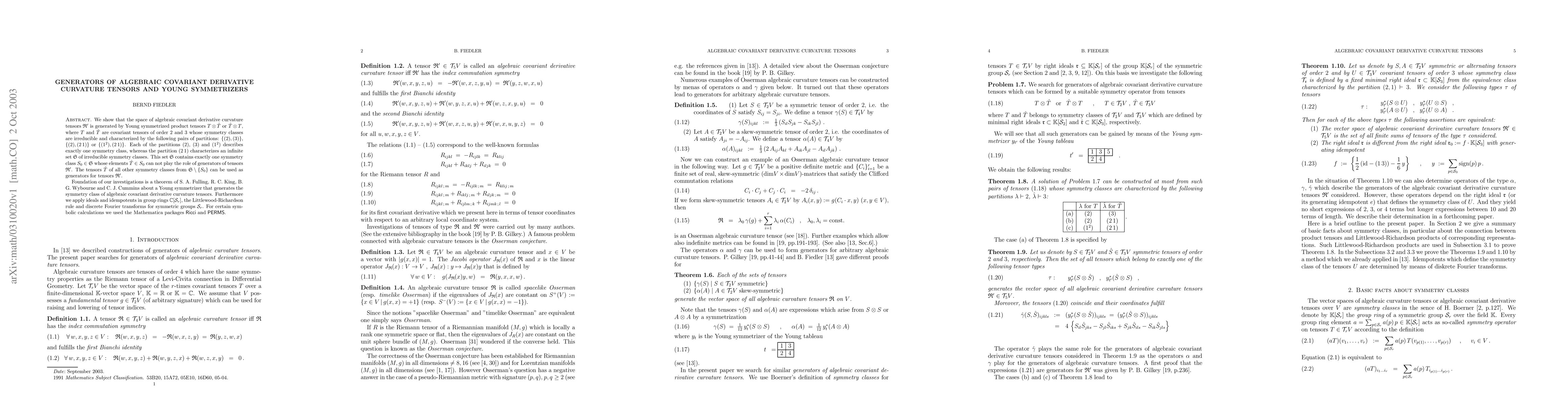 This paper demonstrates that algebraic covariant derivative curvature tensors R' are generated by Young symmetrized tensor products of covariant tensors W and U, characterized by specific irreducible symmetry classes. The tensors U from certain symmetry classes within an infinite set S can serve as generators for R', excluding a specific class S_0.