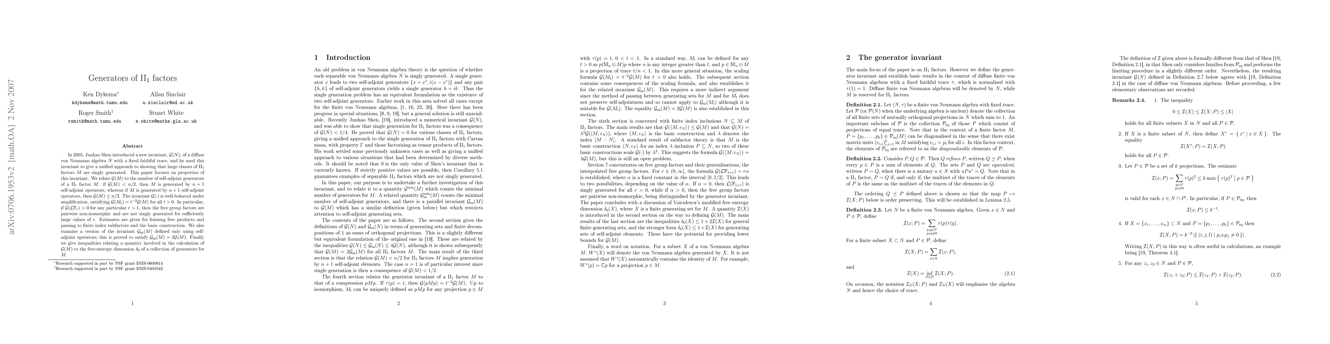 In 2005, Shen introduced a new invariant, $\mathcal G(N)$, of a diffuse von