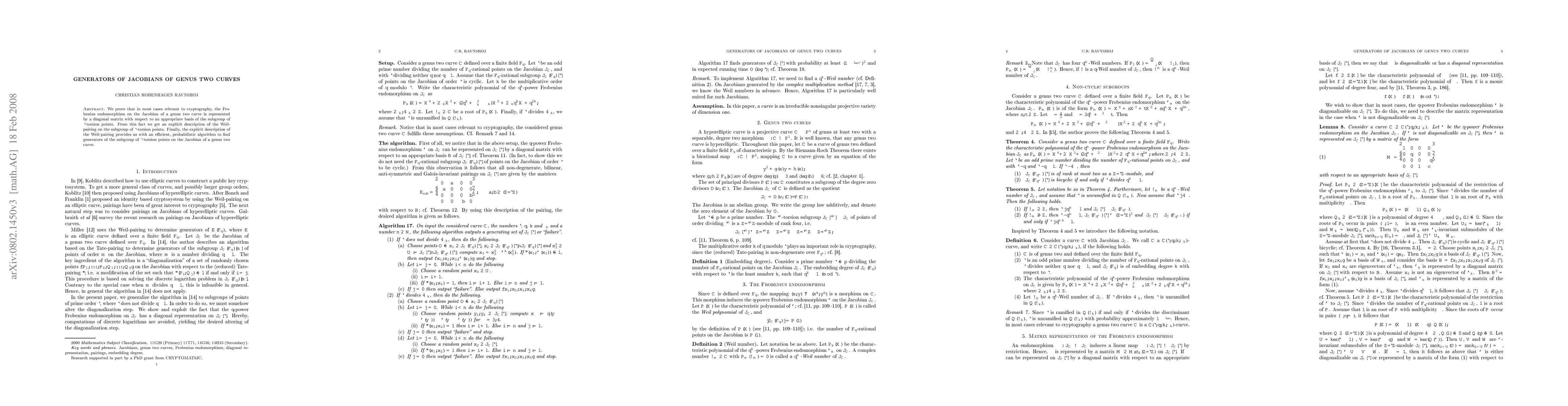 This paper demonstrates that in cryptographic contexts, the Frobenius endomorphism on the Jacobian of a genus two curve can be expressed as a diagonal matrix. This insight leads to an explicit description of the Weil-pairing on l-torsion points and an efficient probabilistic algorithm for finding such generators.