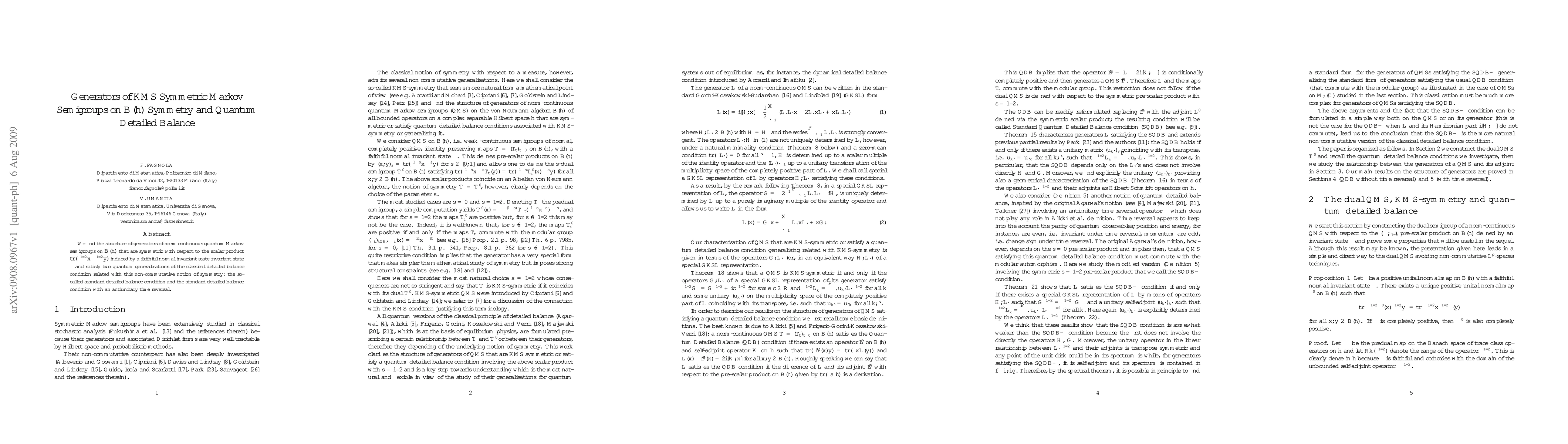 Summary: This paper investigates the structure of generators for continuous quantum Markov semigroups on B(h) that exhibit symmetry under a specific trace product and satisfy quantum versions of the classical detailed balance condition, including an antiunitary time reversal.