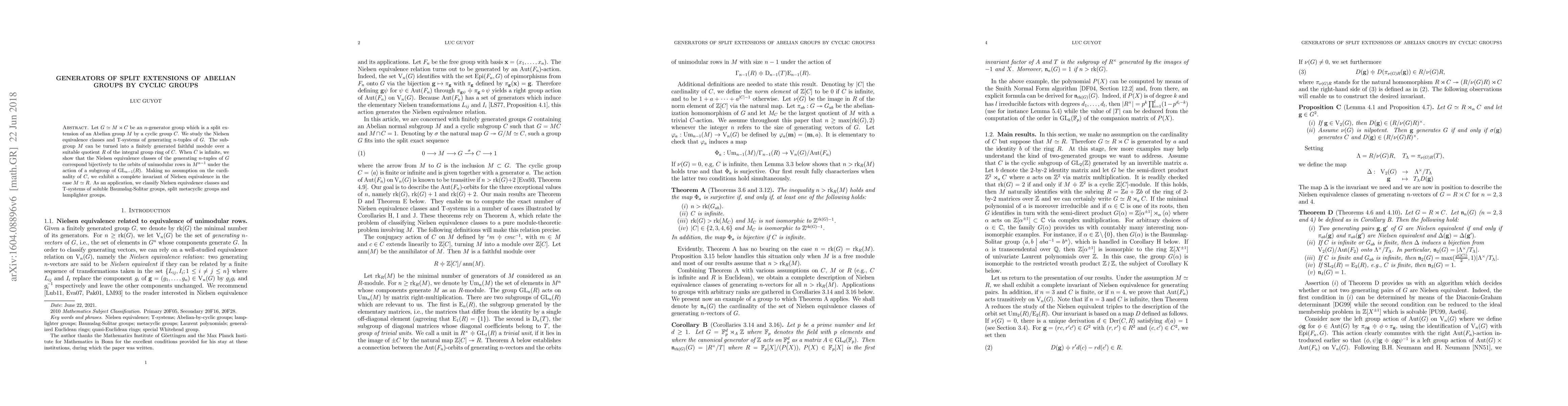 This research paper studies how to classify groups of generators based on their structure, specifically Abelian groups combined with cyclic groups, leading to applications in classifying specific types of groups.