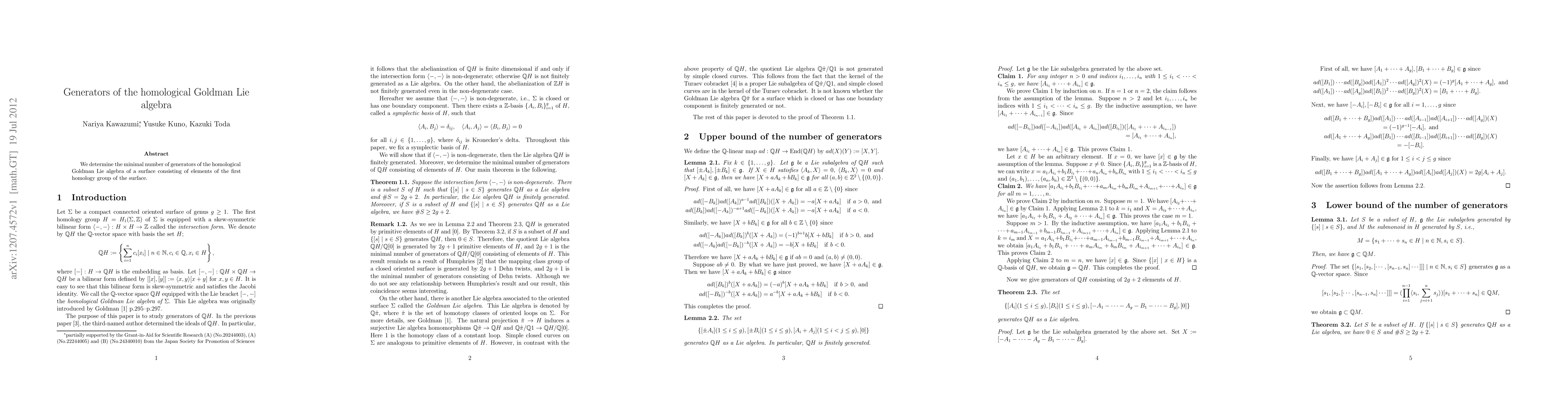 The paper establishes a minimal set of generators for the homological Goldman Lie algebra QH, demonstrating its finite generation under non-degenerate intersection forms.