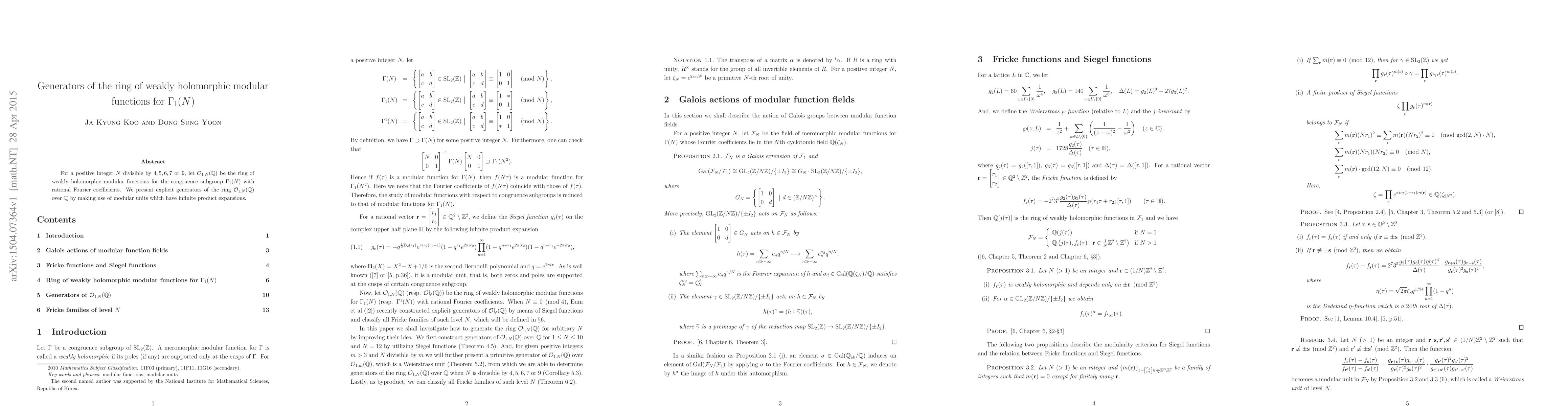 For a positive integer $N$ divisible by $4,5,6,7$ or $9$, let $\mathcal{O}_{1,N}(\mathbb{Q})$ be the ring of weakly holomorphic modular functions for the congruence subgroup $\Gamma_1(N)$ with rational Fourier coefficients. We present explicit generators of the ring $\mathcal{O}_{1,N}(\mathbb{Q})$ over $\mathbb{Q}$ by making use of modular units which have infinite product expansions.