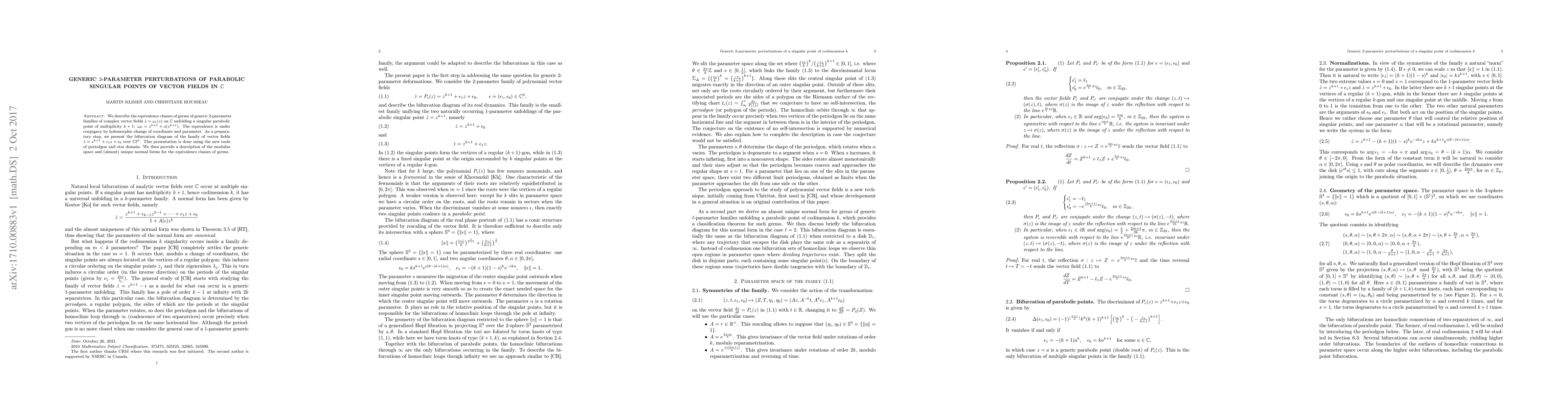 This paper explores the equivalence classes of $2$-parameter perturbations of parabolic singular points in complex vector fields, presenting a bifurcation diagram and using periodgon and star domain tools. It details the modulus space and unique normal forms for these perturbations.
