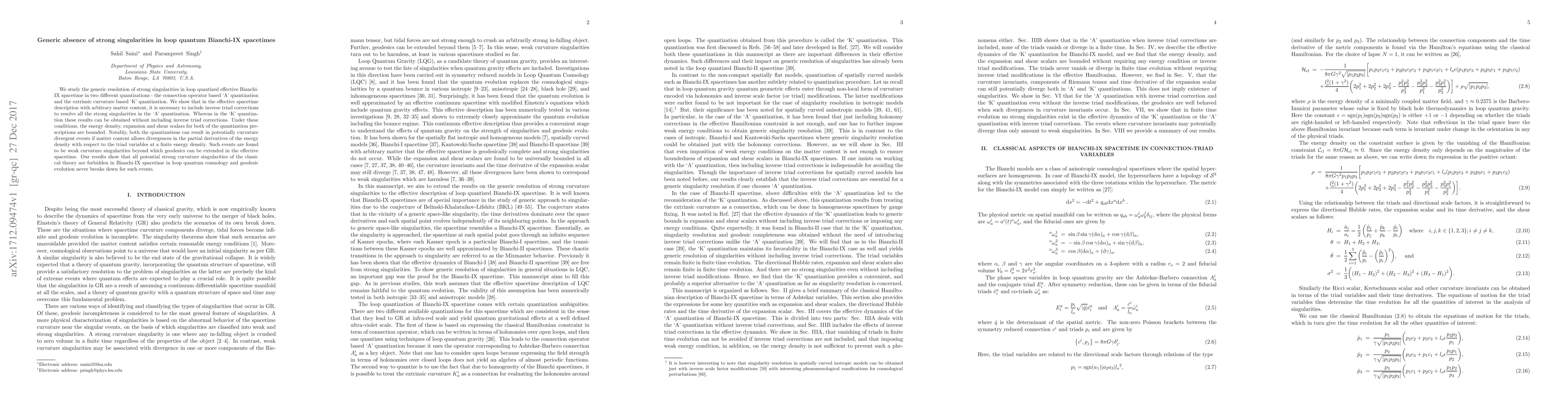 This paper demonstrates that loop quantum cosmology effectively resolves strong singularities in Bianchi-IX spacetimes through two quantization methods, with inverse triad corrections necessary in one method but not the other. Both methods result in bounded energy density and avoid strong curvature singularities, though weak curvature singularities may still occur.
