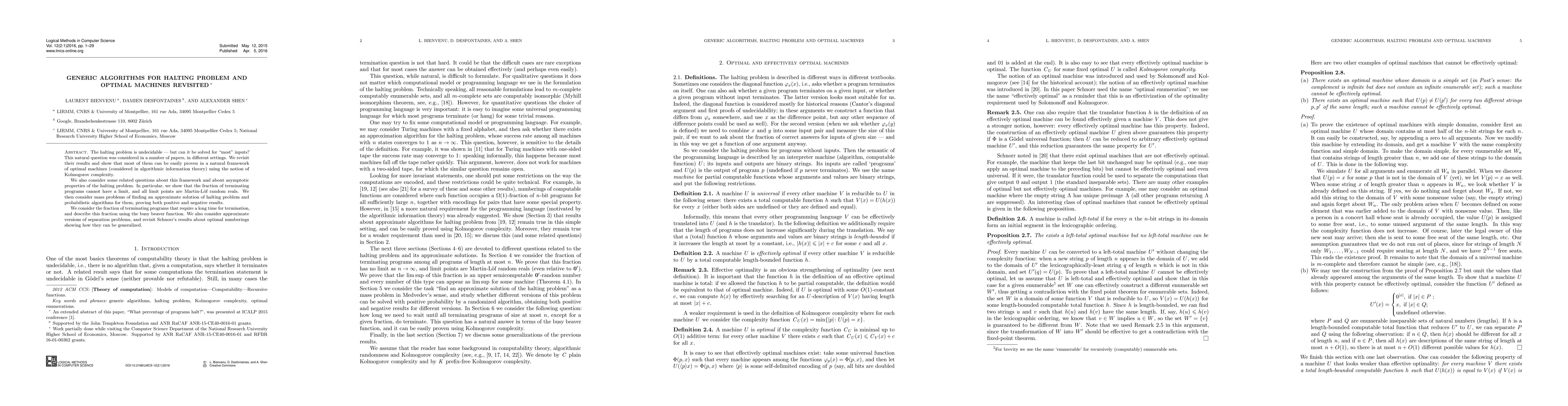 The halting problem is undecidable --- but can it be solved for "most" inputs? This natural question was considered in a number of papers, in different settings. We revisit their results and show that most of them can be easily proven in a natural framework of optimal machines (considered in algorithmic information theory) using the notion of Kolmogorov complexity. We also consider some related questions about this framework and about asymptotic properties of the halting problem. In particular, we show that the fraction of terminating programs cannot have a limit, and all limit points are Martin-L\"of random reals. We then consider mass problems of finding an approximate solution of halting problem and probabilistic algorithms for them, proving both positive and negative results. We consider the fraction of terminating programs that require a long time for termination, and describe this fraction using the busy beaver function. We also consider approximate versions of separation problems, and revisit Schnorr's results about optimal numberings showing how they can be generalized.