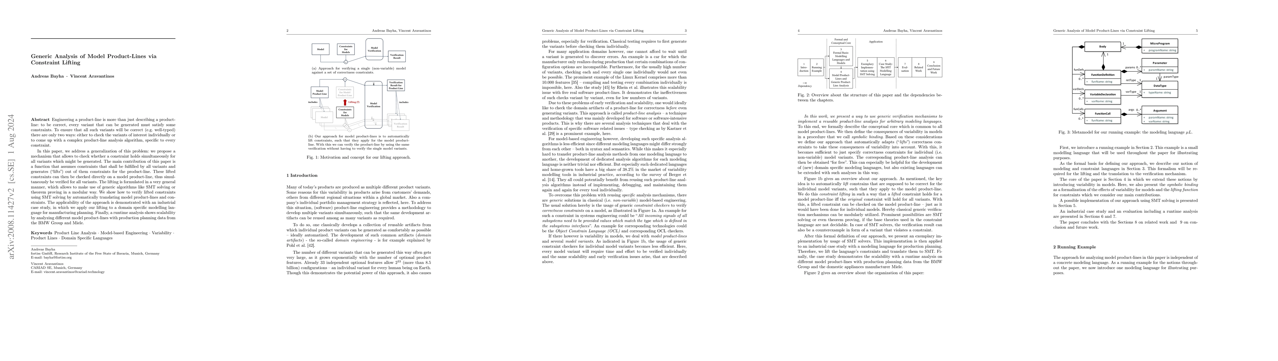 Engineering a product-line is more than just describing a product-line: to be correct, every variant that can be generated must satisfy some constraints. To ensure that all such variants will be correct (e.g. well-typed) there are only two ways: either to check the variants of interest individually or to come up with a complex product-line analysis algorithm, specific to every constraint. In this paper, we address a generalization of this problem: we propose a mechanism that allows to check whether a constraint holds simultaneously for all variants which might be generated. The contribution of this paper is a function that assumes constraints that shall be fulfilled by all variants and generates ("lifts") out of them constraints for the product-line. These lifted constraints can then be checked directly on a model product-line, thus simultaneously be verified for all variants. The lifting is formulated in a very general manner, which allows to make use of generic algorithms like SMT solving or theorem proving in a modular way. We show how to verify lifted constraints using SMT solving by automatically translating model product-lines and constraints. The scalability of the approach is demonstrated with an industrial case study, in which we apply our lifting to a domain specific modeling language of the manufacturing domain.