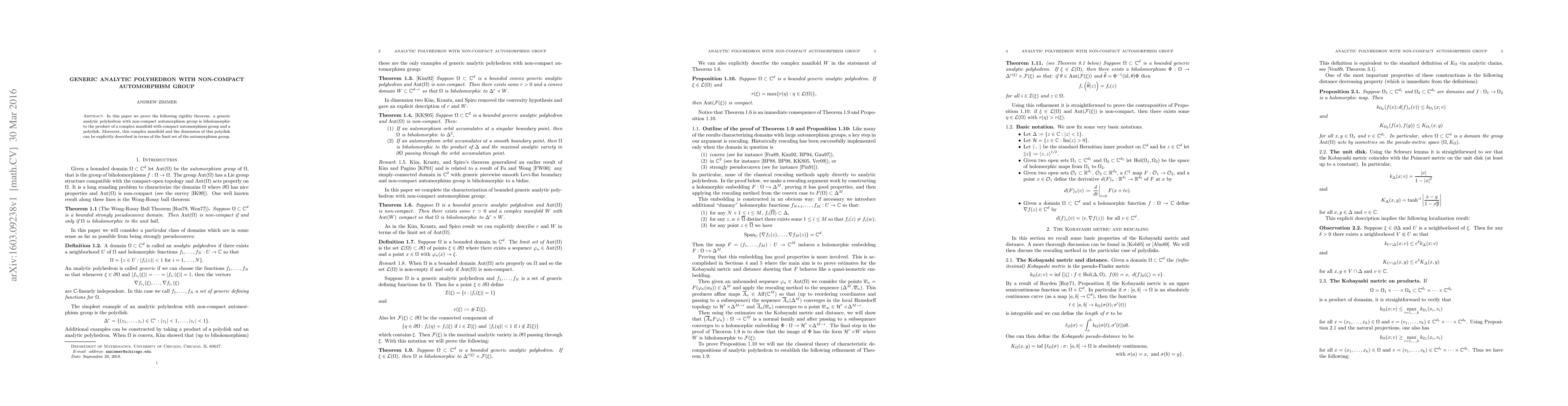 This paper proves that a generic analytic polyhedron with a non-compact automorphism group is biholomorphic to a product of a complex manifold with a compact automorphism group and a polydisk, with explicit descriptions of the manifold and polydisk dimensions derived from the automorphism group's limit set.