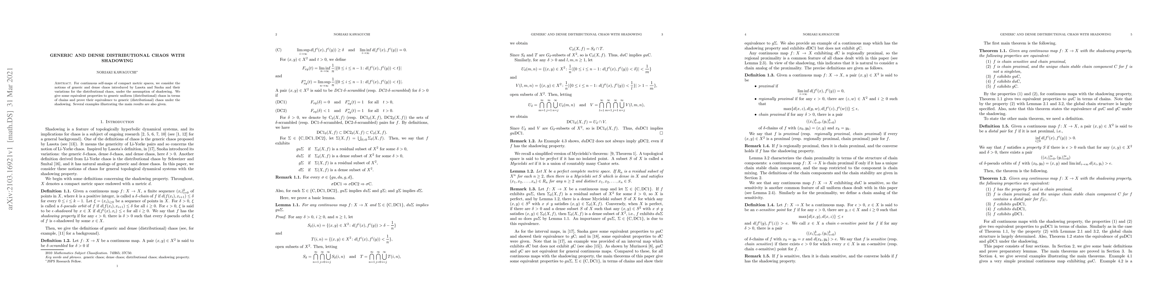 This paper explores the concepts of generic and dense chaos in continuous self-maps of compact metric spaces, focusing on distributional chaos under the assumption of shadowing. It establishes equivalences between generic uniform distributional chaos and generic chaos, leveraging chain properties and illustrating these with examples.