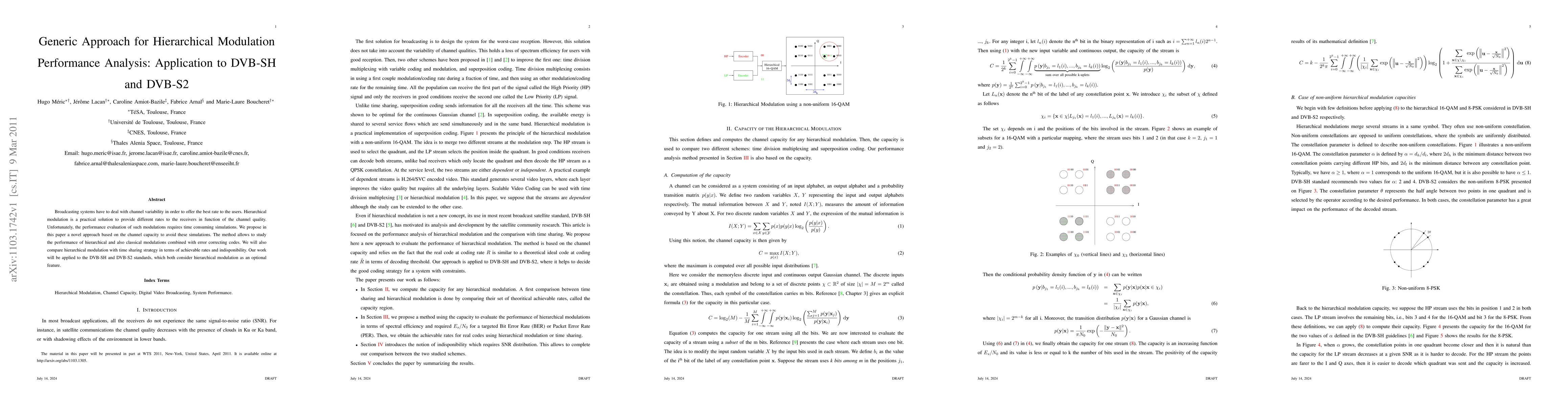 A new method is proposed to analyze hierarchical modulation performance without requiring simulations, focusing on channel capacity for DVB-SH and DVB-S2 standards.
