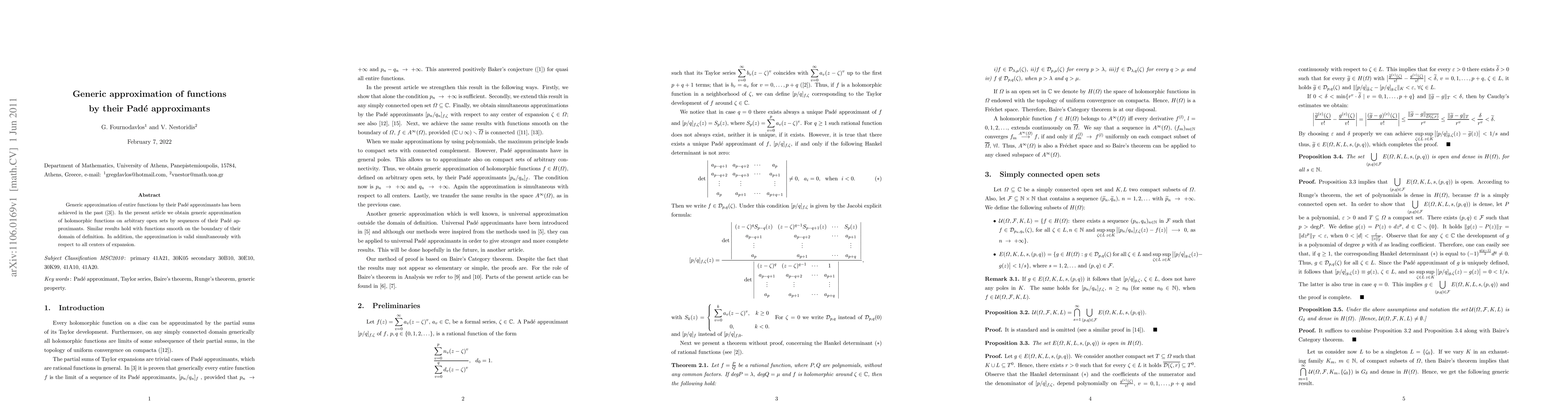 This paper extends the generic approximation of entire functions by Padé approximants to holomorphic functions on arbitrary open sets, including those smooth on their boundary, and demonstrates that the approximation holds simultaneously for all expansion centers.