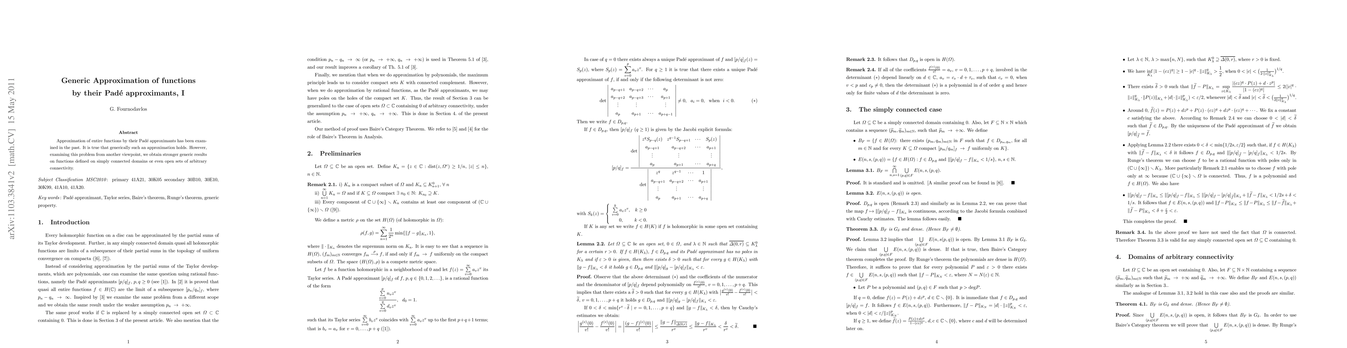 Summary: This paper explores the generic approximation of entire functions by their Padé approximants, revealing stronger results for functions defined on simply connected domains or open sets of arbitrary connectivity. The study provides a deeper understanding of the approximation's effectiveness in broader contexts.