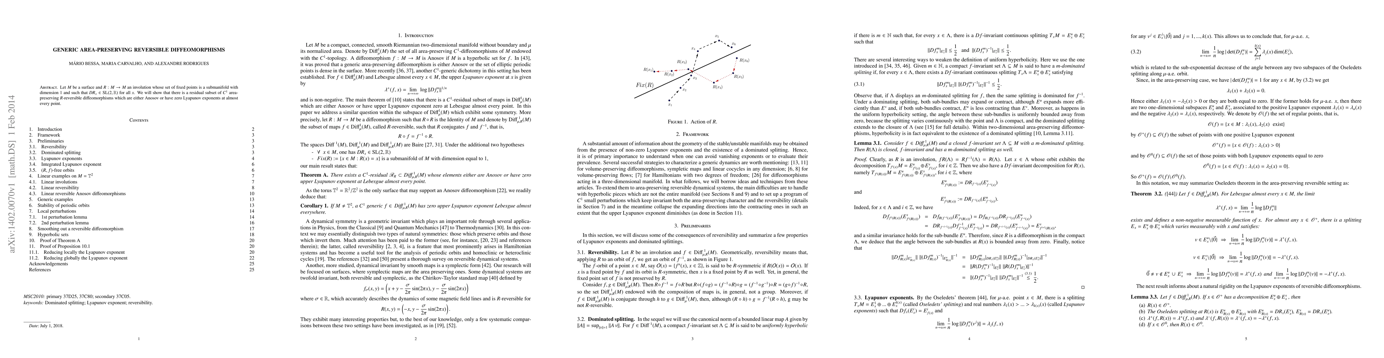 Summary: The paper demonstrates the existence of a residual subset of smooth, area-preserving diffeomorphisms on a surface that are either Anosov or have zero Lyapunov exponents almost everywhere, given a specific involution with certain isometric properties. This result highlights the complexity and variability in the dynamical behavior of such diffeomorphisms.