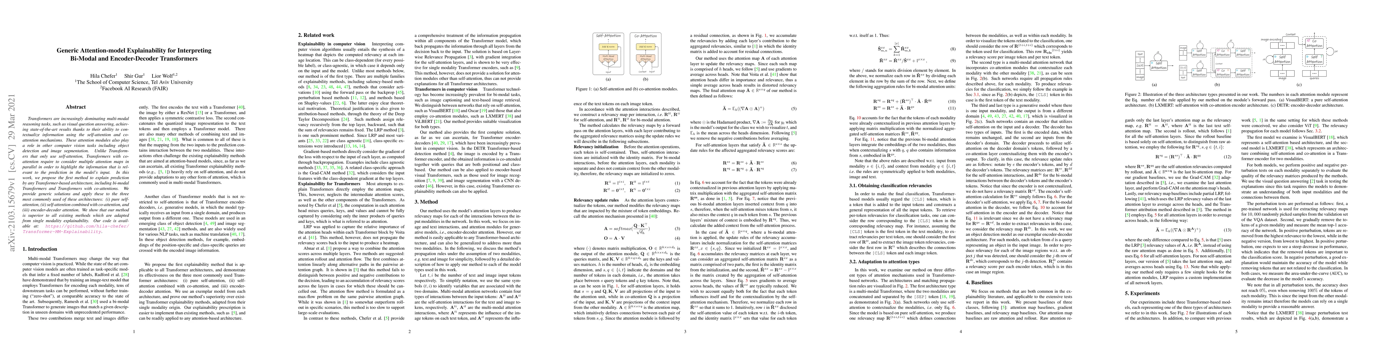 This paper introduces a novel method for explaining predictions made by various Transformer-based architectures, including bi-modal and encoder-decoder models, outperforming existing single-modality explainability techniques. The proposed generic solutions are applied to three common architectures: self-attention, co-attention, and encoder-decoder attention.
