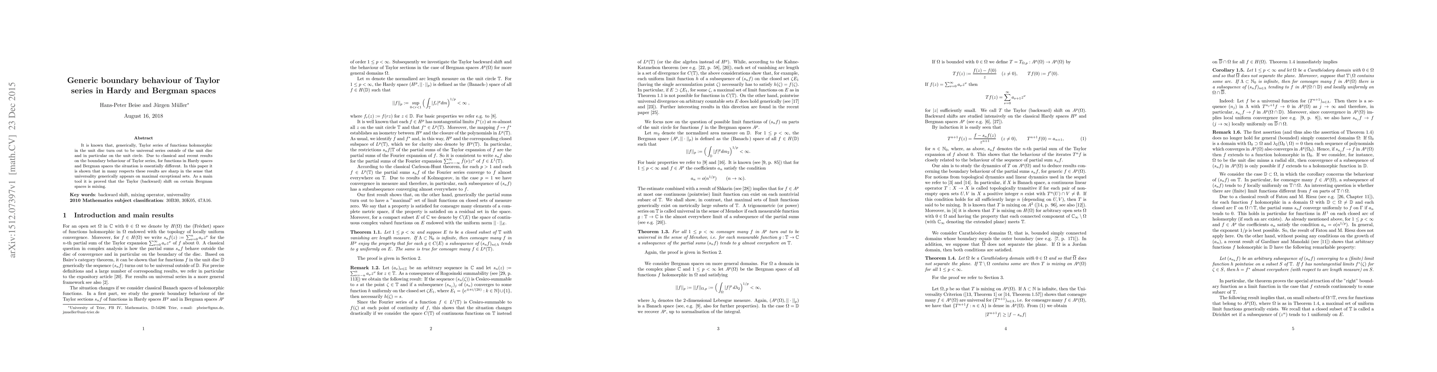 This paper investigates the boundary behavior of Taylor series for functions in Hardy and Bergman spaces, demonstrating that universality typically occurs on maximal exceptional sets. The authors prove that the Taylor backward shift on certain Bergman spaces is mixing, highlighting the sharpness of results regarding the boundary behavior of these series.