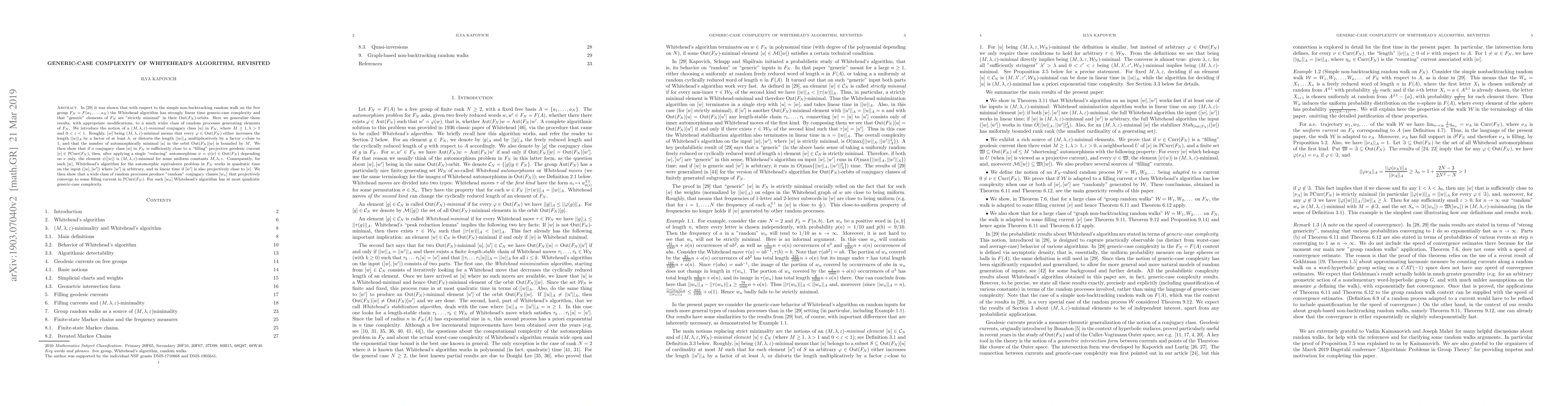 The research employs a combination of theoretical analysis and computational experiments to study the generic-case complexity of Whitehead's algorithm in the context of random walks on free groups.
